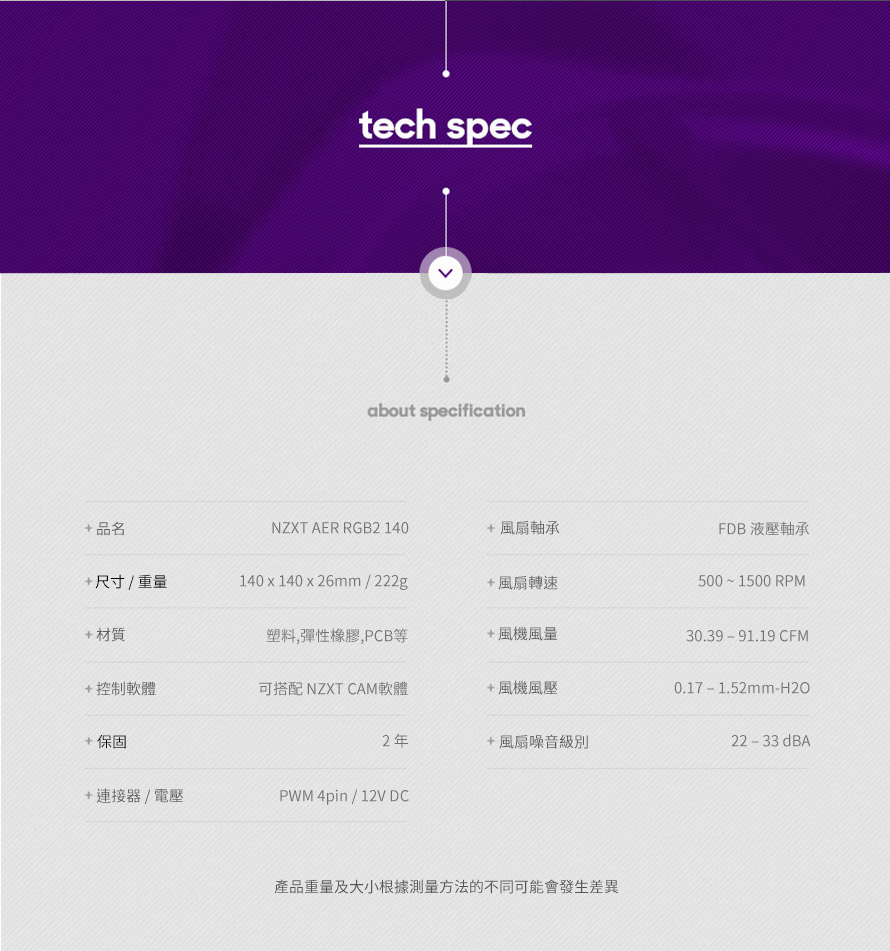 • NZXT AER RGB 2 140mm 風扇(黑)(單入)