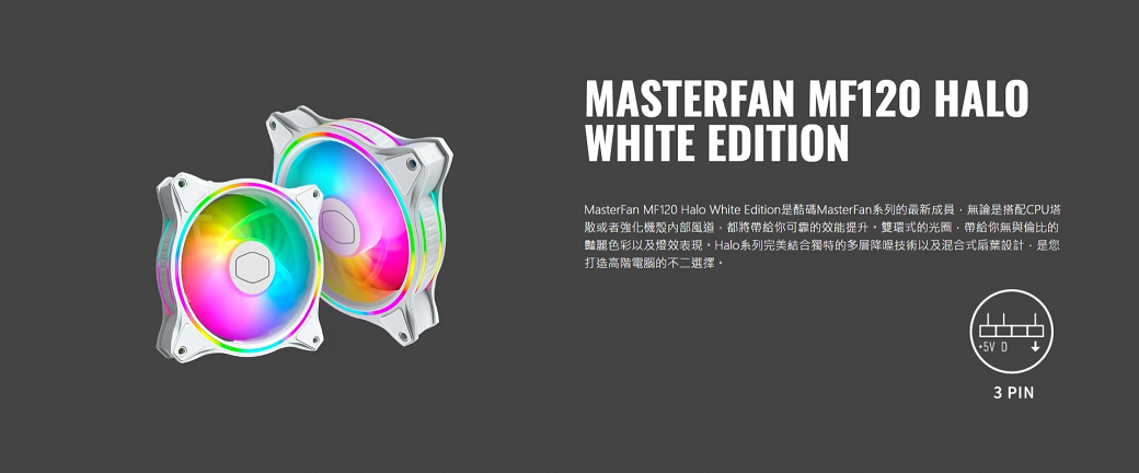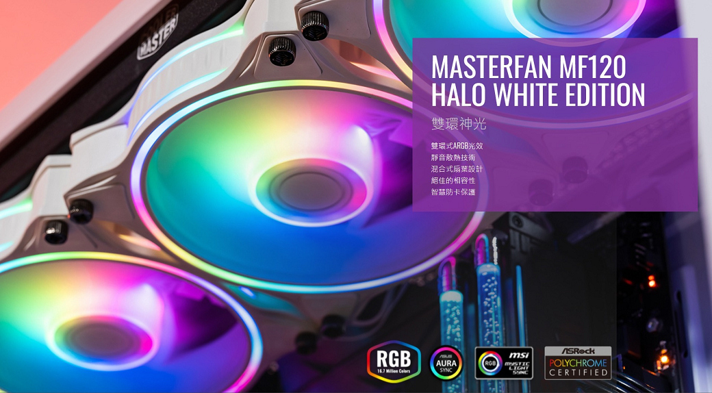 酷碼 MasterFan MF120 Halo 白 風扇/雙環A.RGB/防脫線/PWM(MFL-B2DW-18NPA-R1)