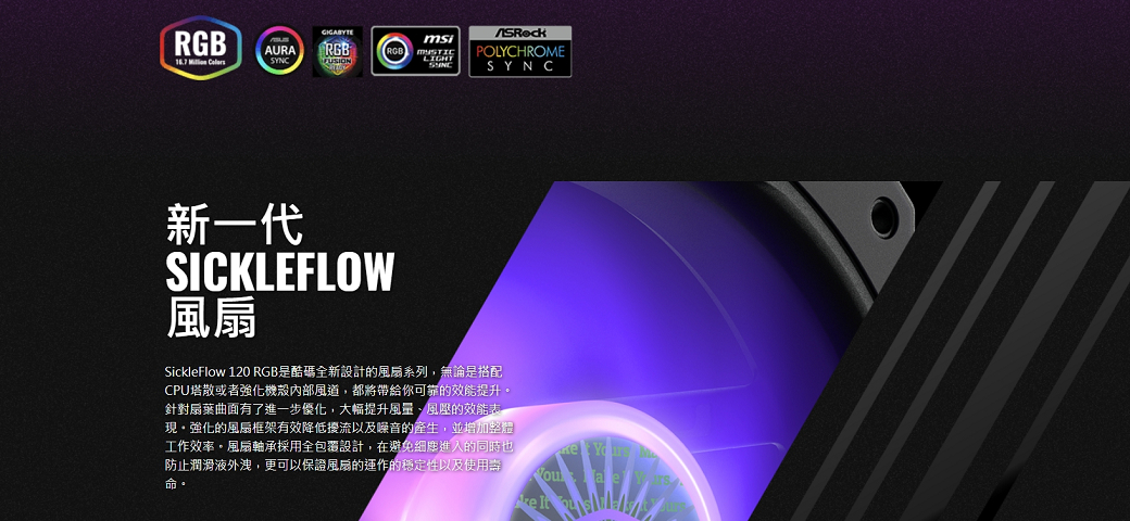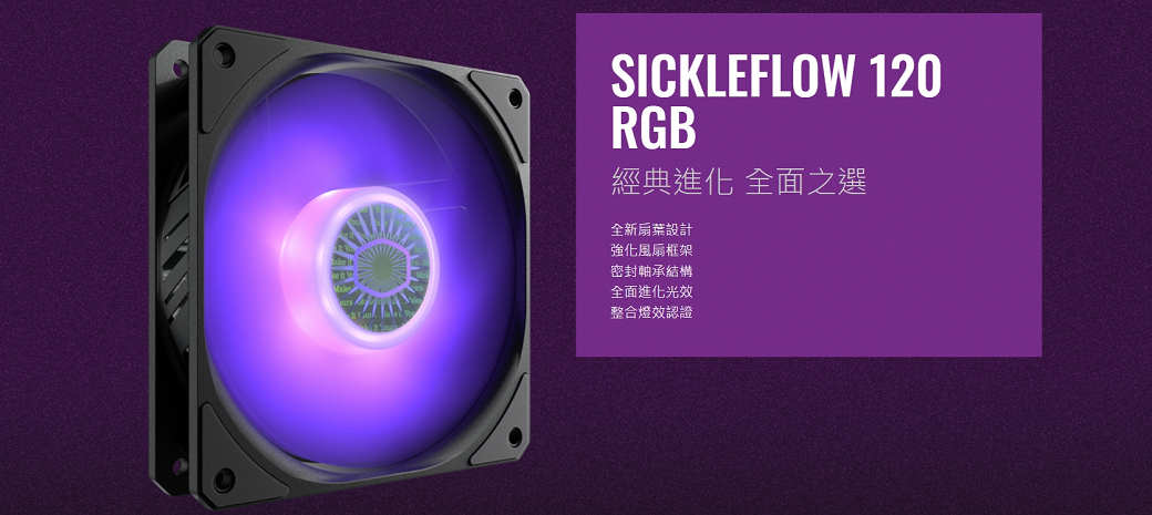 酷碼 SickleFlow 120 RGB 風扇/1800RPM/防脫線設計/PWM(MFX-B2DN-18NPC-R1)