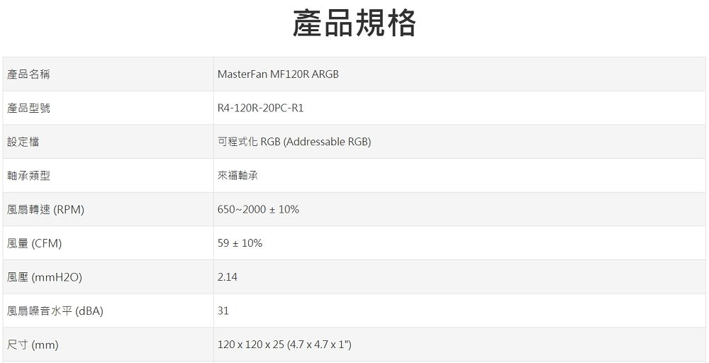 • 酷碼 MasterFan MF120R A.RGB 12cm風扇