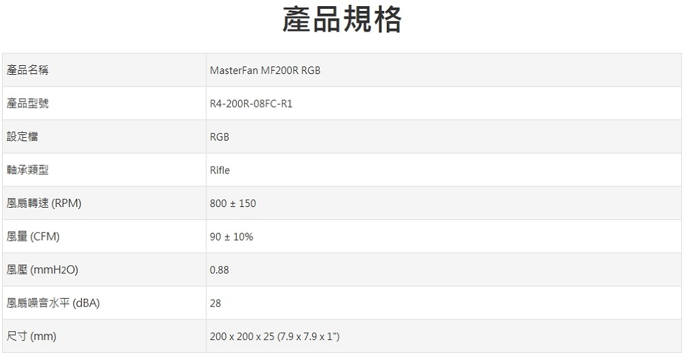 • 酷碼 MasterFan MF200R RGB 20cm風扇/小3Pin
