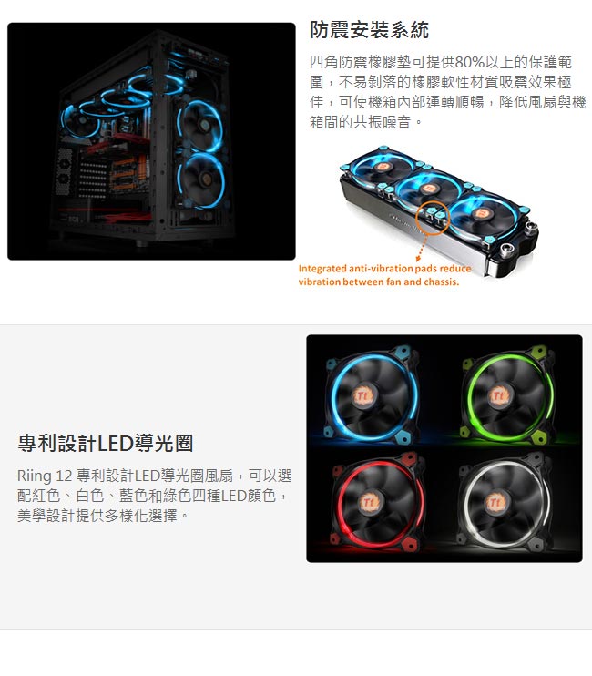• Thermaltake曜越 12cm RiingLED高風壓水冷排風扇(藍光)