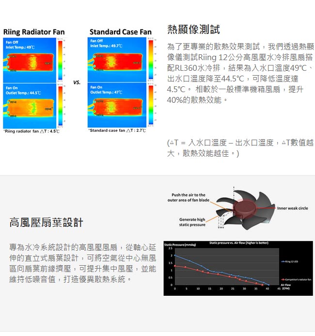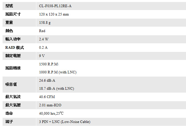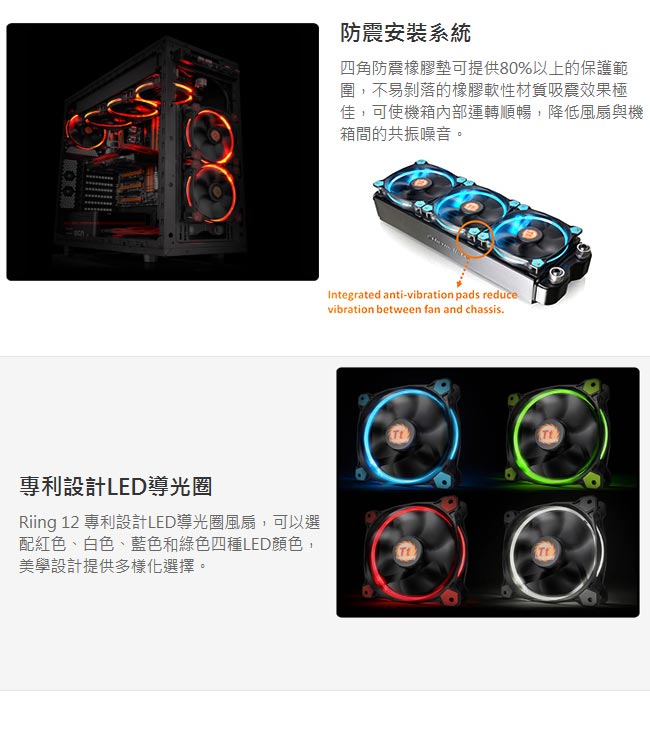 • Thermaltake曜越 12cm RiingLED高風壓水冷排風扇(紅光)