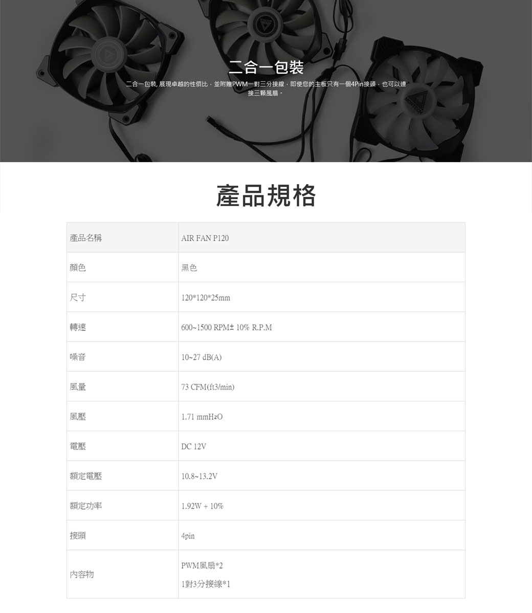 • YAMA 德隆 MONTECH (君主) Air Fan P120 PWM