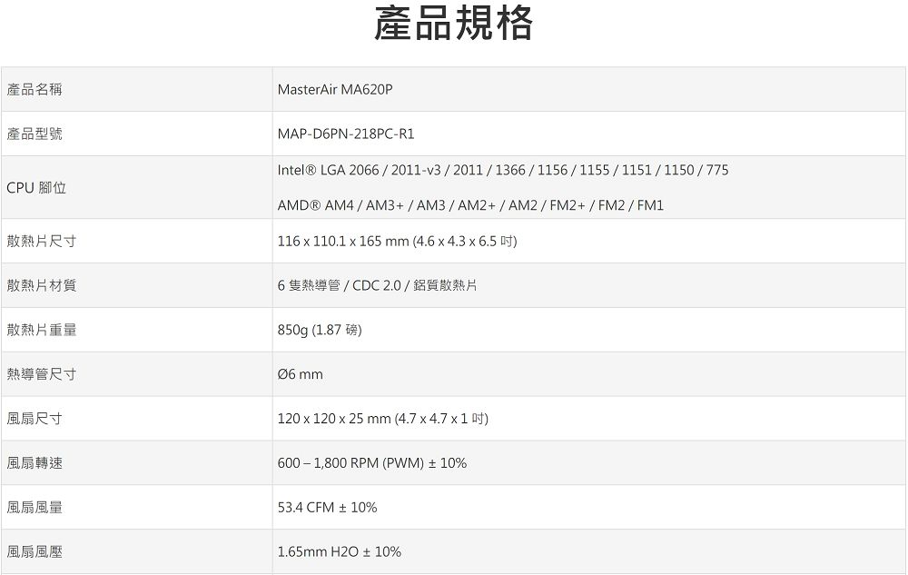 酷碼 MasterAir MA620P RGB/6導管/直觸式/雙塔雙扇/附控制器/高16.6/TDP:200W