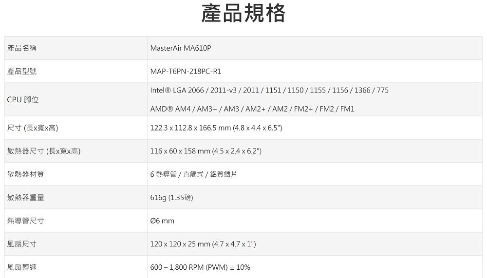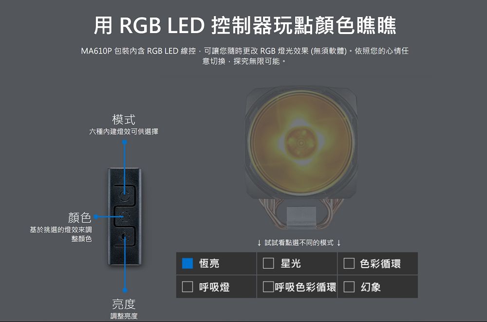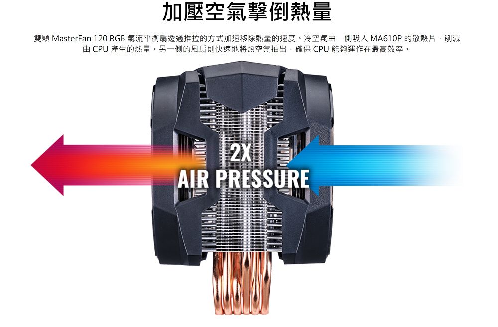酷碼 MasterAir MA610P RGB/6導管/直觸式/雙風扇/附控制器/高16.6/TDP:180W【VWX】