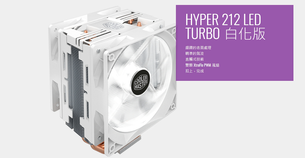 酷碼 Hyper 212 LED Turbo(白化版)/雙風扇/高16.3/TDP:160W【VWX】