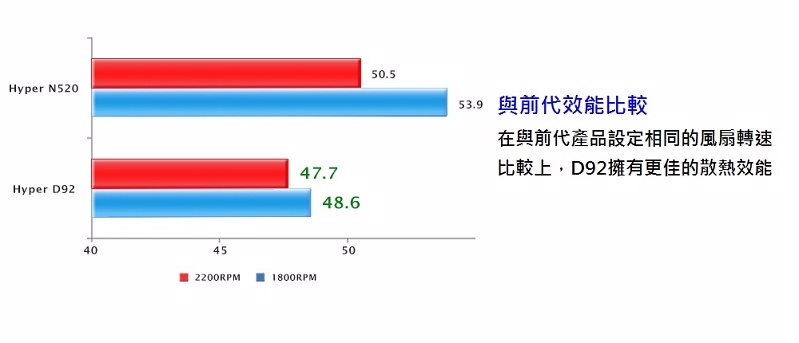 CoolerMaster Hyper D92 延續頗受好評的 Hyper 系列,同時導入了多項全新設計。透過全新設計的雙風扇架構,能夠有效取得最佳的氣流導引路徑,進而提升整體散熱效率,發揮 Cooler Master 獨家 4 根直觸式熱導管的散熱潛能。搭載的通用型扣具系統不僅支援最新的 Intel 與 AMD 平台,在安裝上依舊輕鬆簡單,讓小機殼也能享有超頻改裝的樂趣。不用懷疑,Hyper D92 絕對是一款擁有強大散熱性能的中型塔式散熱器。