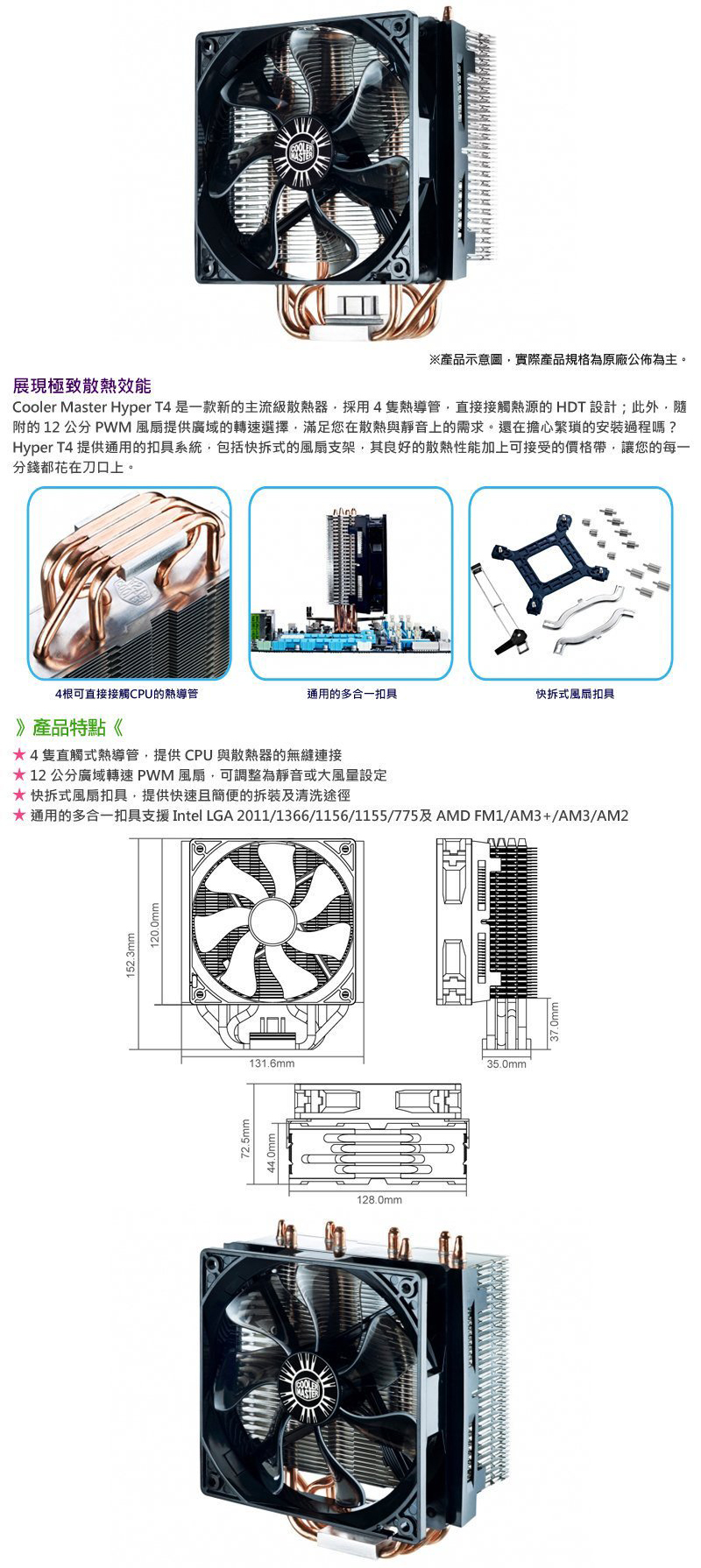 酷碼 Hyper T4 4根熱導管/PWM風扇/高度15.2/TDP:140W【WX】