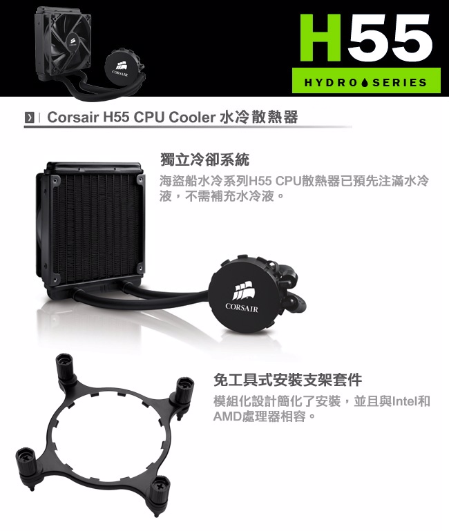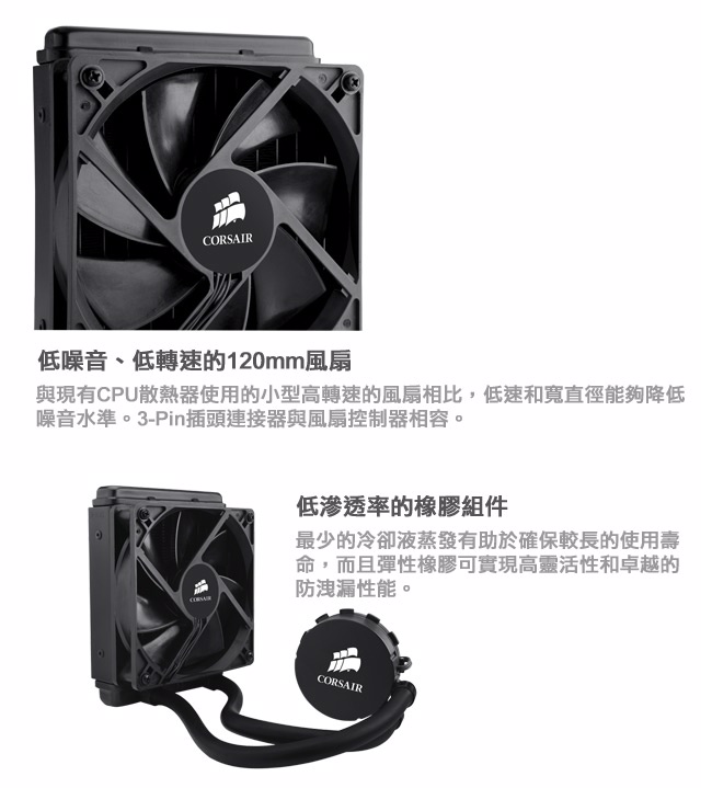 海盜船 H55 12cm冷排/扁平化幫浦/圓形銅底水冷頭/厚:5cm(CW-9060010-WW)