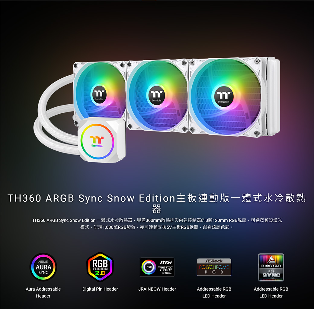 • 曜越 TH360 ARGB 白 水冷散熱器