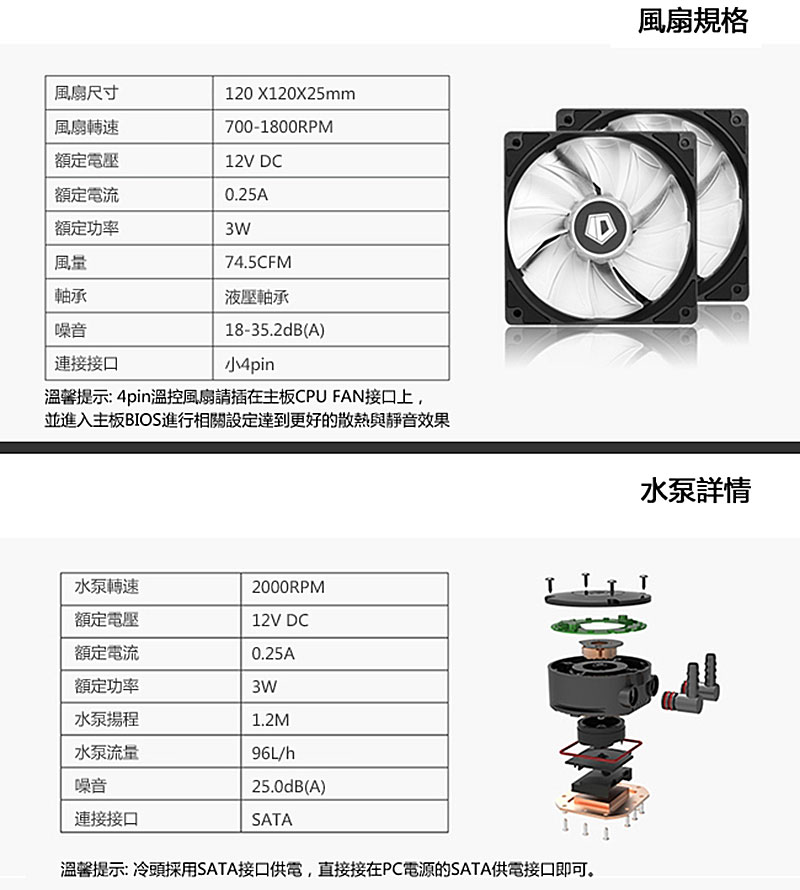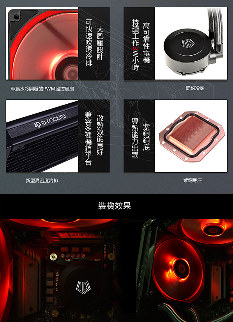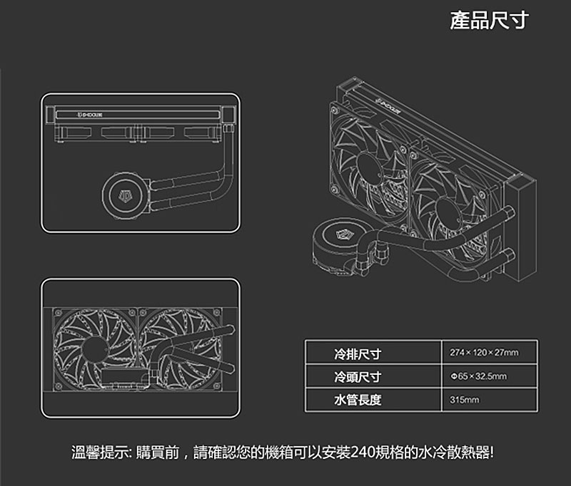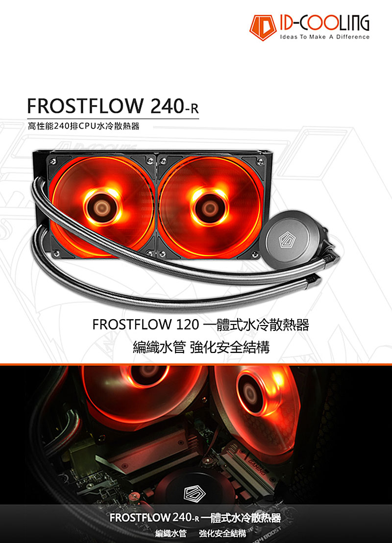 ID-COOLING 一體式水冷 FROSTFLOW 240 溫控PWM散熱風扇