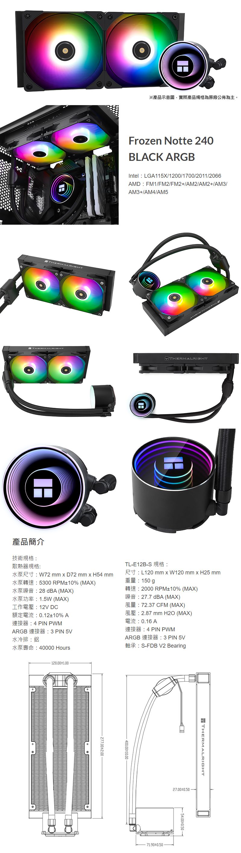 利民 Frozen Notte 240 BLACK ARGB 厚:5.2cm/鏡面水冷頭/五年保