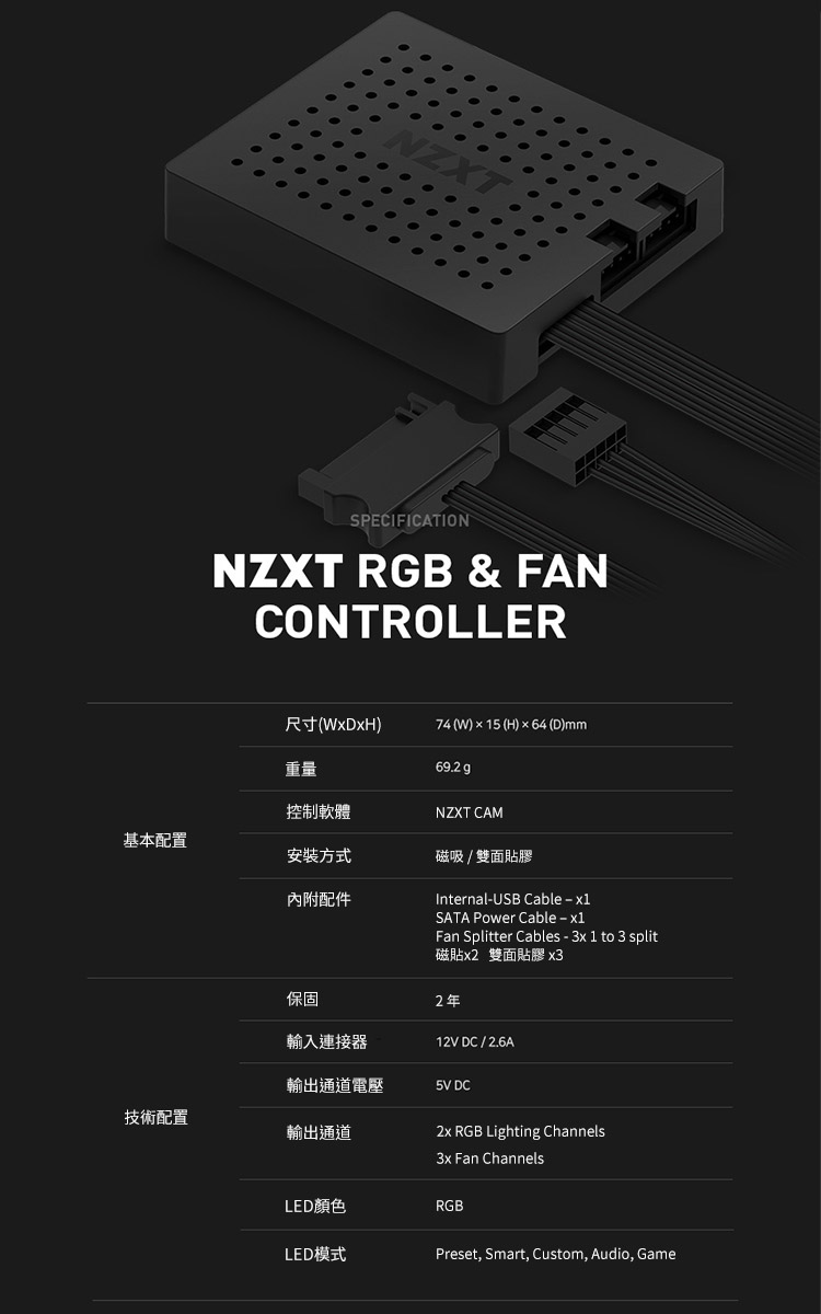 • NZXT 風扇燈光共用控制器 RGB & FAN CONTROLLER