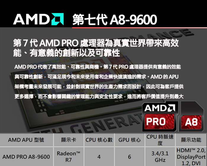 • AMD A8-9600【4核/6 GPU-代理】3.1G