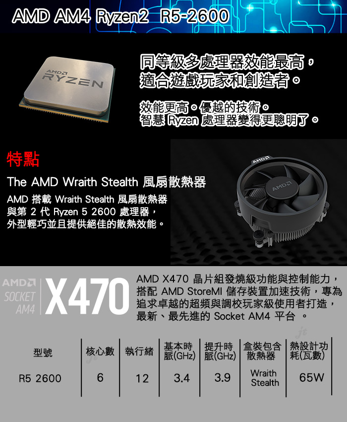 【搭機價】AMD R5 2600【6核/12緒-代理】3.4G(↑3.9G)65W/19M/12nm/無內顯/含風扇