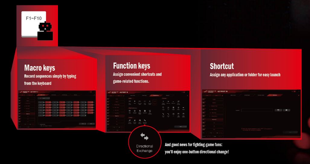 來自獨家微處理器和直覺式使用者介面的免費鍵盤升級。 直接從鍵盤記錄巨集、瞬間切換設定檔、使用快速鍵 F1-F10 啟用特殊功能、從關機(S5 模式)狀態啟動電腦甚至加快電腦速度!