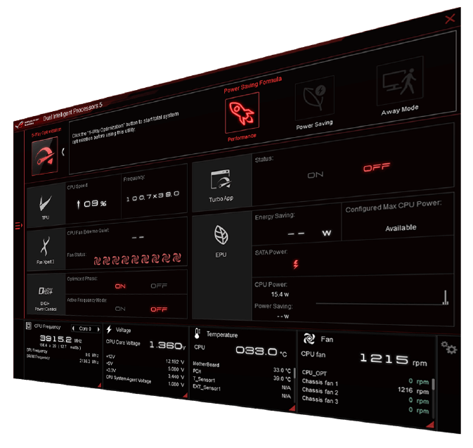 超頻和散熱,單鍵搞定! 讓效能、效率、數位電源、風扇控制、甚至網路功能、音效調校都為玩家及遊戲風格量身打造! 5 向最佳化功能將設定化繁為簡,輕按一鍵即快速掌握效能升級,讓您無須成為專家,也能夠強化 Maximus VIII Formula 的遊戲效能! 此獨家技術會根據即時使用情形,以動態方式將系統關鍵層面最佳化,讓您享有卓越的 CPU 效能、日常節能、超穩定數位電源、兼顧散熱和靜音的風扇,甚至是專為使用中應用程式所設計的網路和音效設定。 簡而言之,5 向最佳化功能能夠讓電腦完美配合遊戲、娛樂、工作或任何情境! ■遊戲執行既迅速又順暢,讓您享受高效能、優先分配頻寬和生動音效。 ■風扇在日常運算時保持寂靜,在執行遊戲時則發揮極致散熱效能。 ■消除延遲情形, ■即使在高負載下,應用程式也能順暢運作。 ■減少能源浪費,節省成本。 |