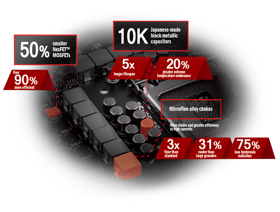 效能越高,遊戲就越順暢,而您獲勝的機會也就越大。 有了最佳超頻 (OC) 設計、UEFI BIOS 和直覺式 OC 工具,您將享受無可比擬的效能 — 此外更結合獨家散熱設計,保證系統永不過熱。