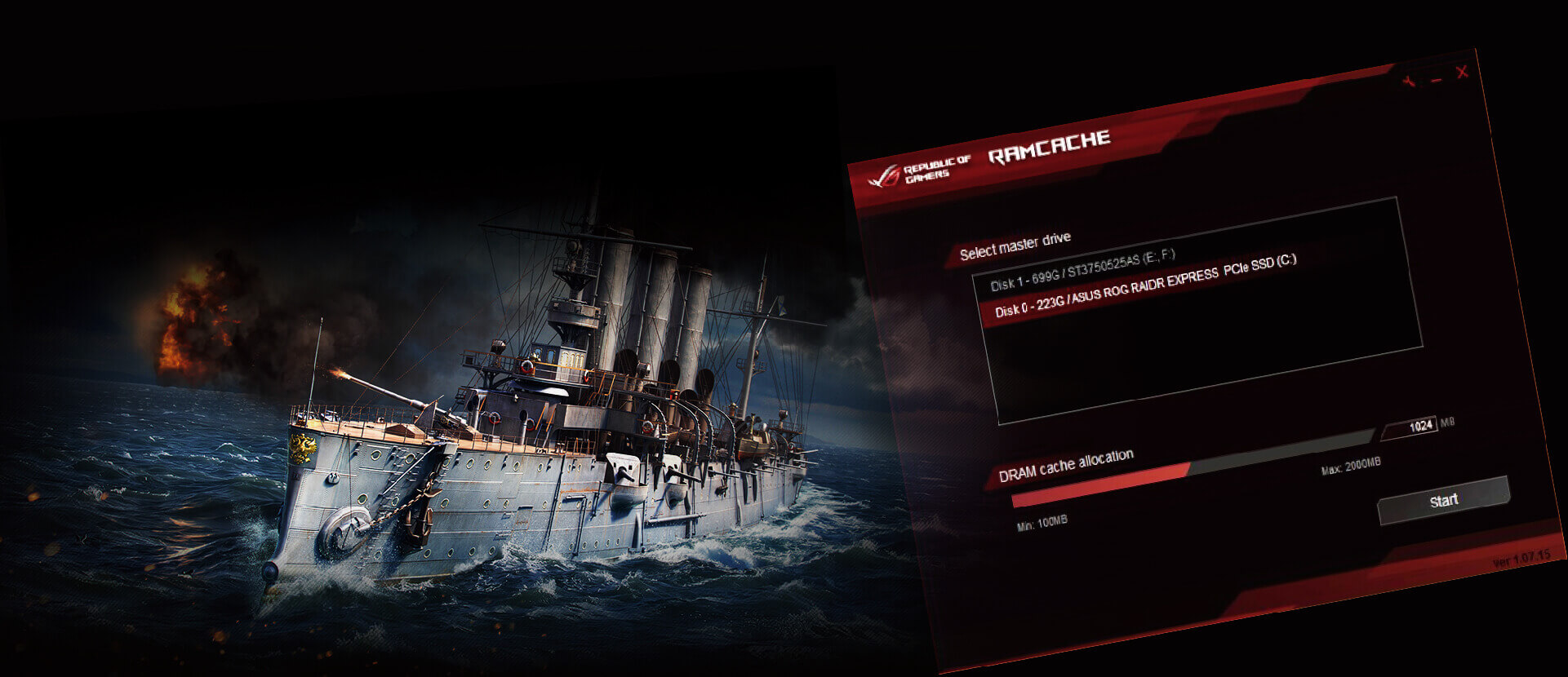 ROG 獨特的智慧技術能有效快取整個儲存裝置,使您最喜愛的遊戲及應用程式能以超快速度啟動。 RAMCache 把毫秒變成微秒,將遊戲載入時間推向最高境界,並降低資料遺失的風險!