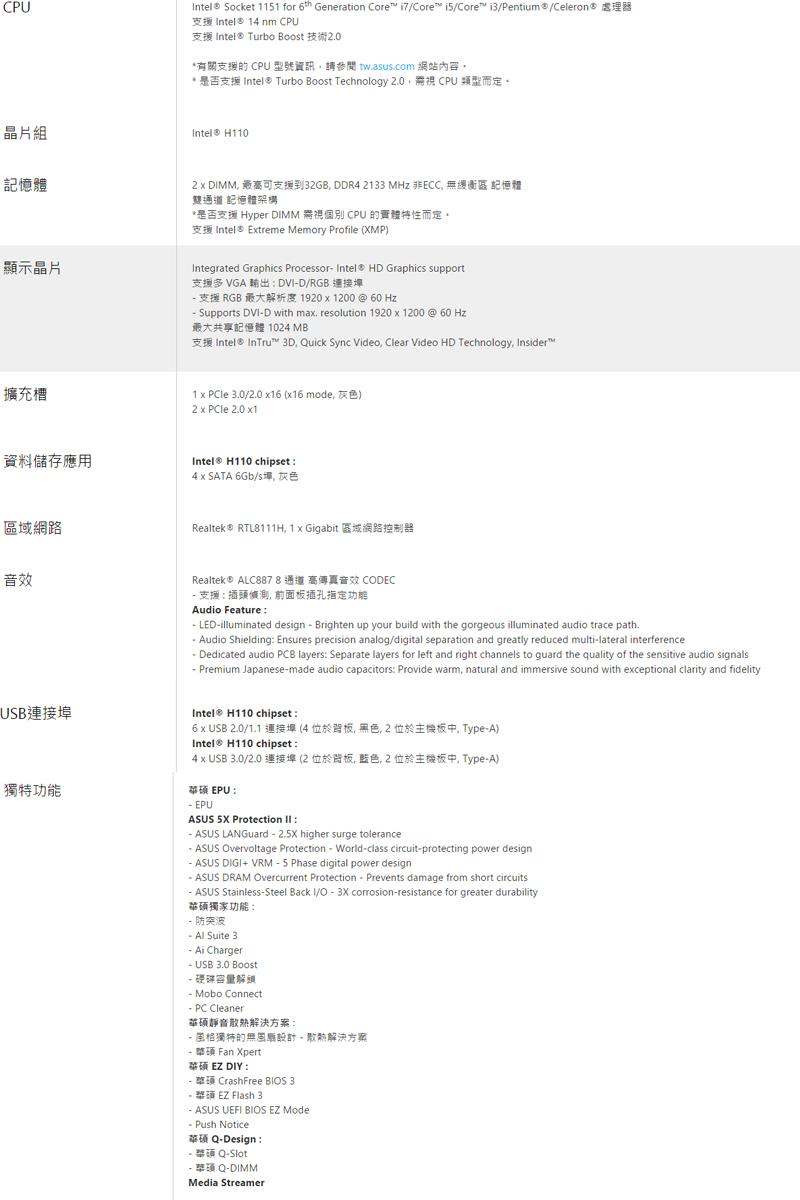 華碩 H110M-K【單片盒裝】(M-ATX/1A1D/U3/Realtek 1Gb/全固/註四年)