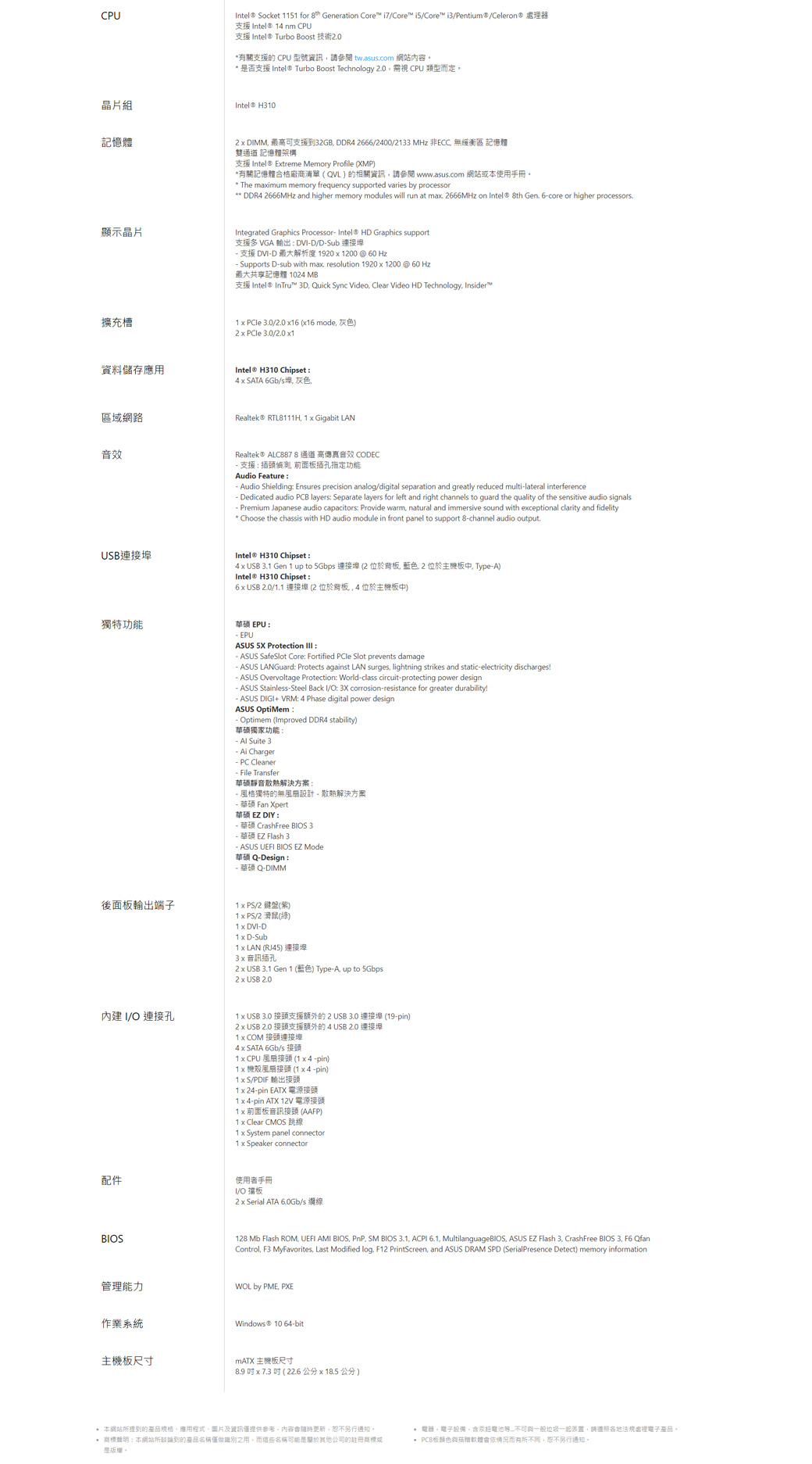 【裝機價】華碩 PRIME H310M-K(M-ATX/1A1D/註四年)