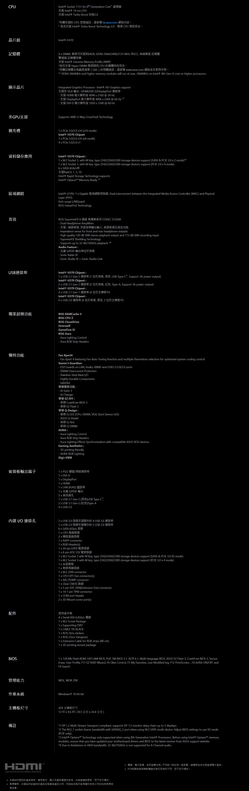 華碩 ROG STRIX H370-F GAMING(ATX/1D1H1P/2*M.2/I網/註五年)登