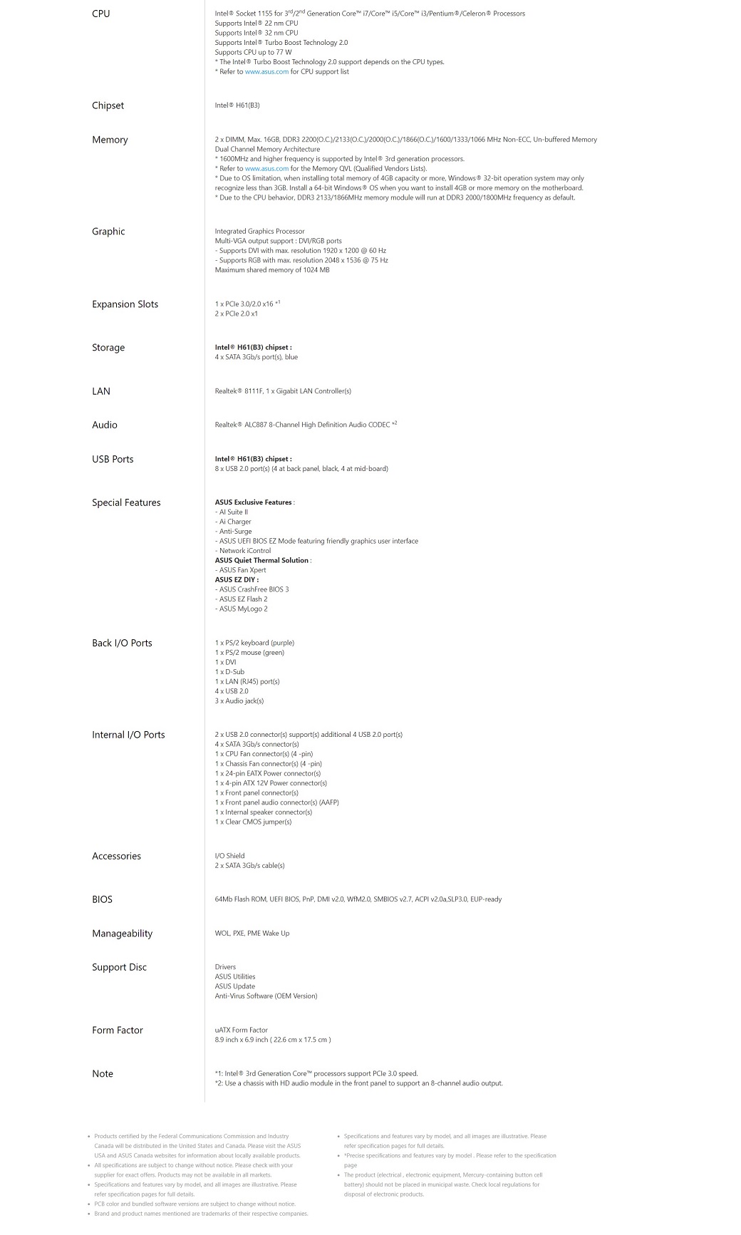 華碩 H61M-K(M-ATX/1A1D/2*PCIEx1/全固態/註四年) 支援 WinXP