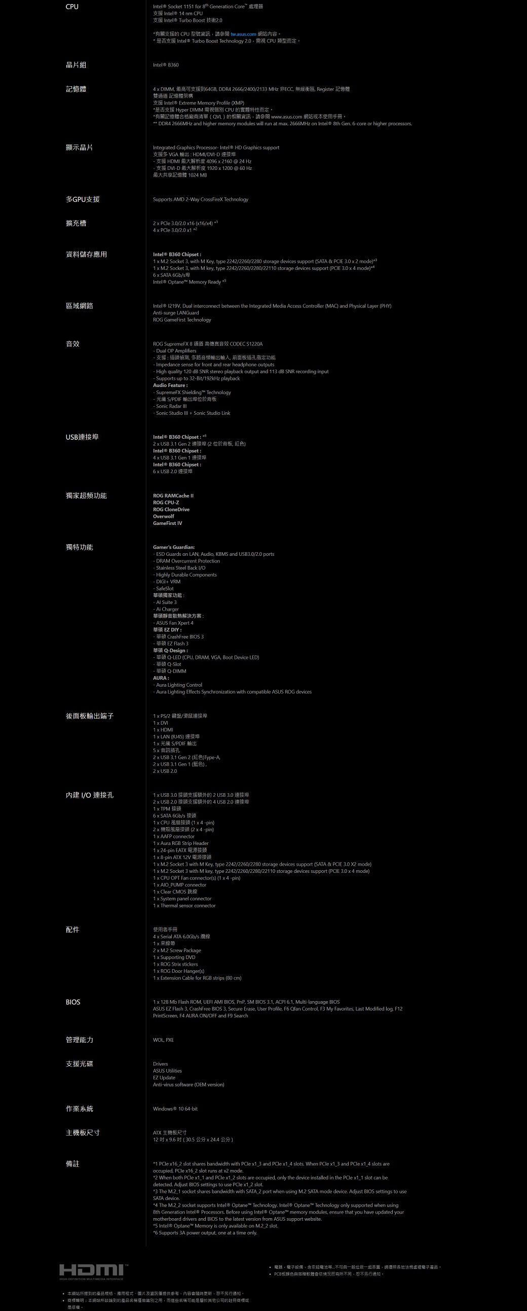 華碩 ROG STRIX B360-H GAMING(ATX/1D1H/2*M.2/I網/註五年)