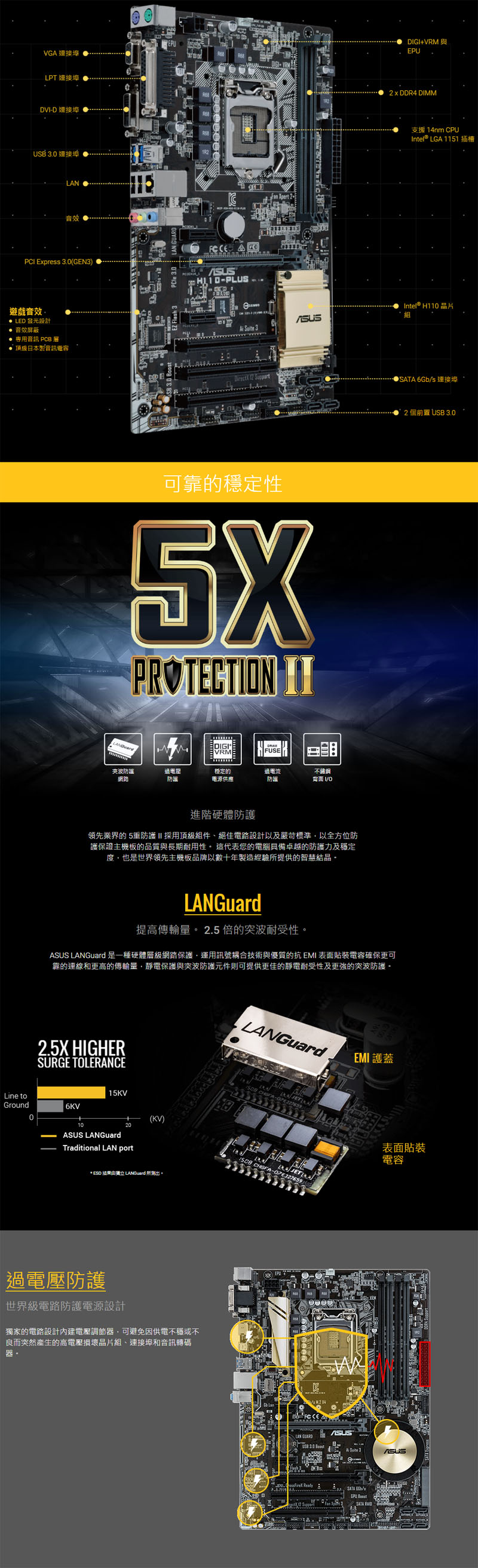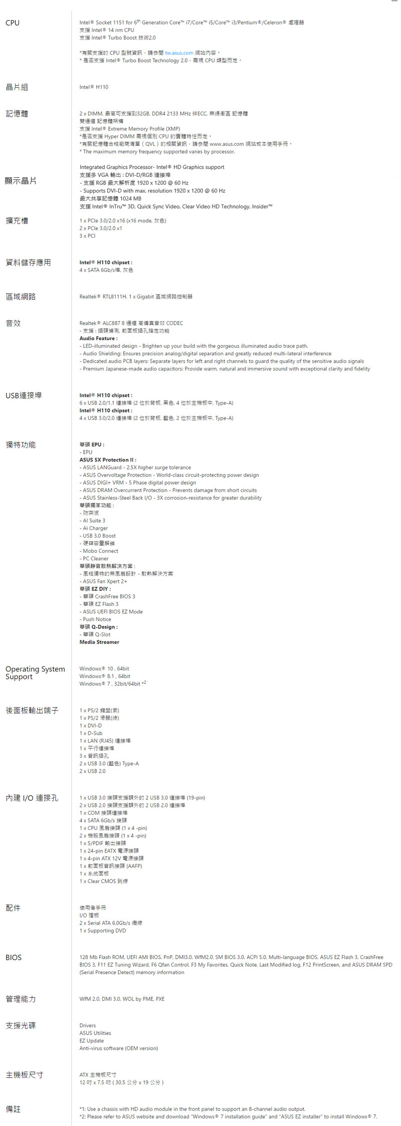 華碩 H110-PLUS(ATX/1A1D/全固/U3/LPT PORT/註四年)