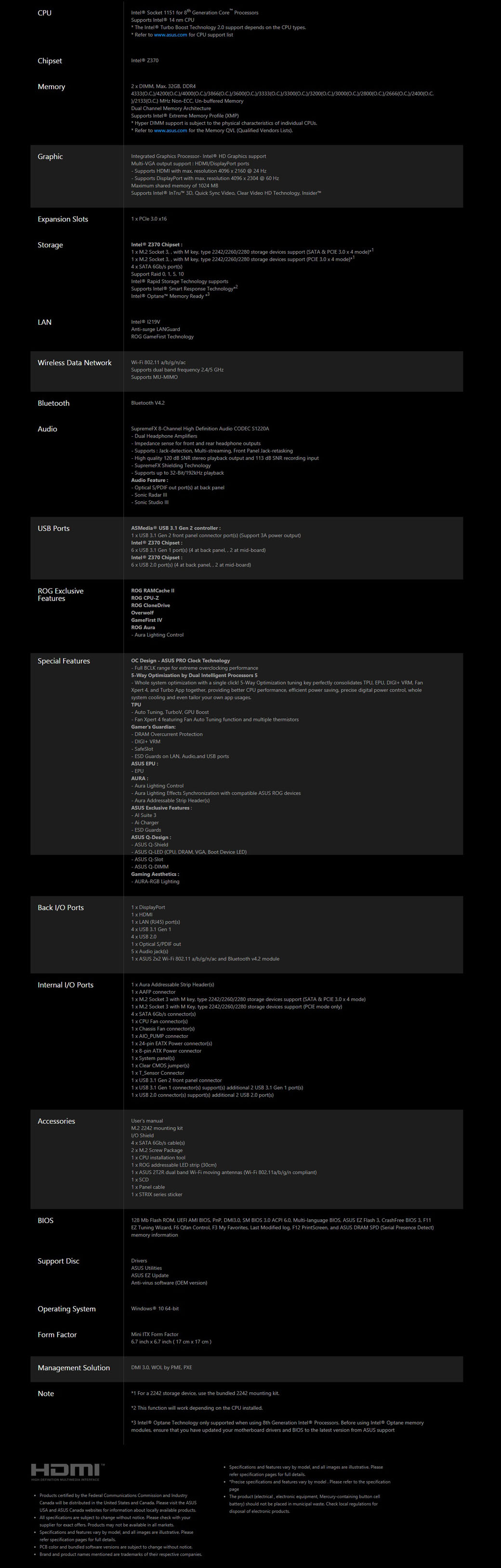 華碩 ROG STRIX Z370-I GAMING(mini-ITX/1H1P/I網/ac+BT4/註五年)