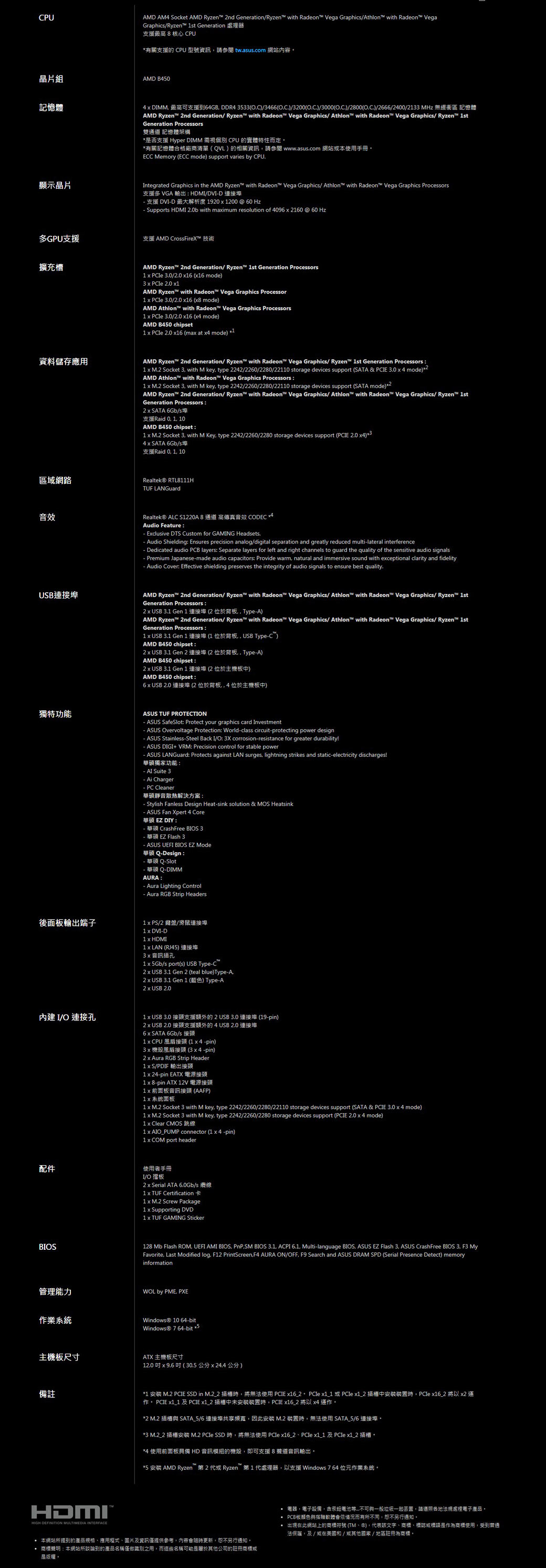 • 華碩 TUF-B450-PRO-GAMING