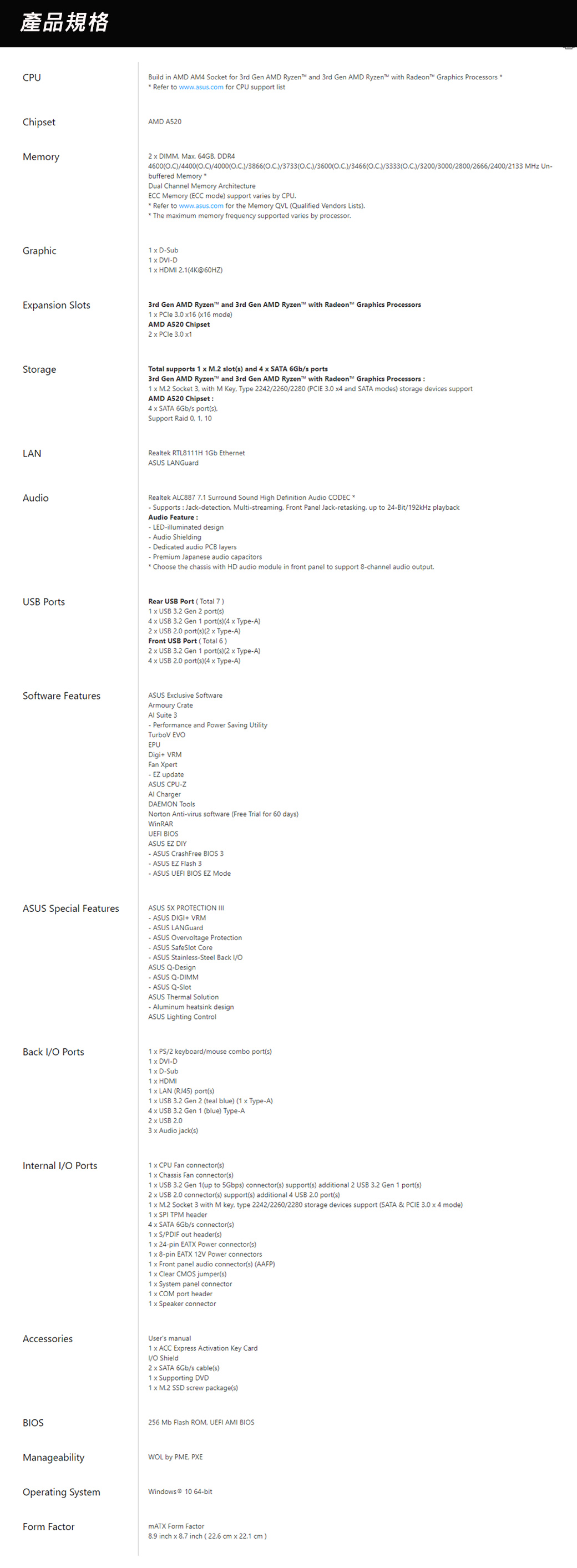 華碩 PRIME A520M-E/CSM (M-ATX/1A1DH/Realtek LAN/註四年)