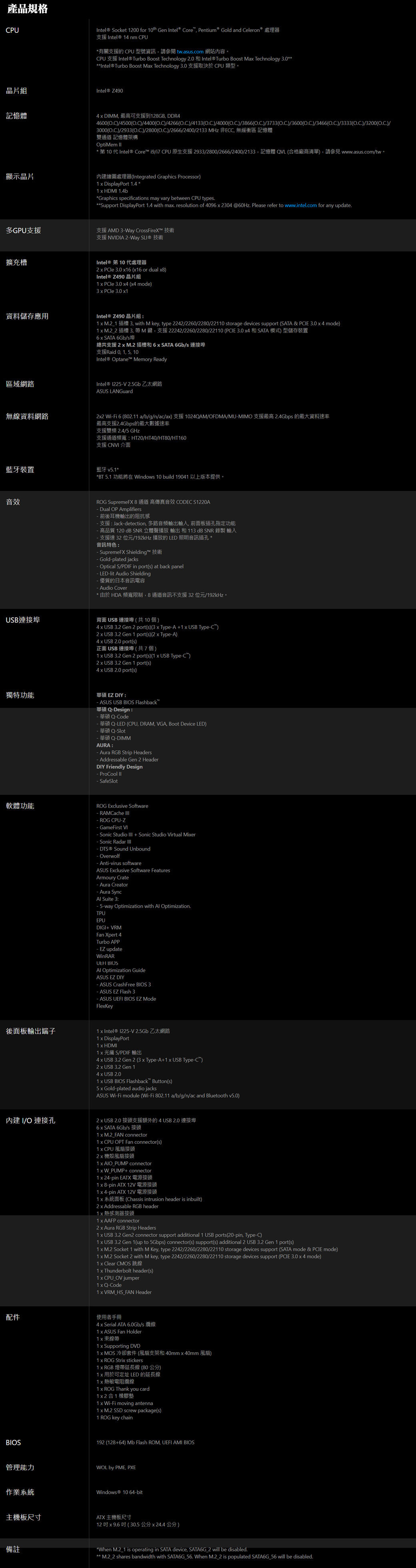 華碩 ROG STRIX Z490-E GAMING(ATX/1H1P/I網2.5G/ax+BT5.1/註五年)