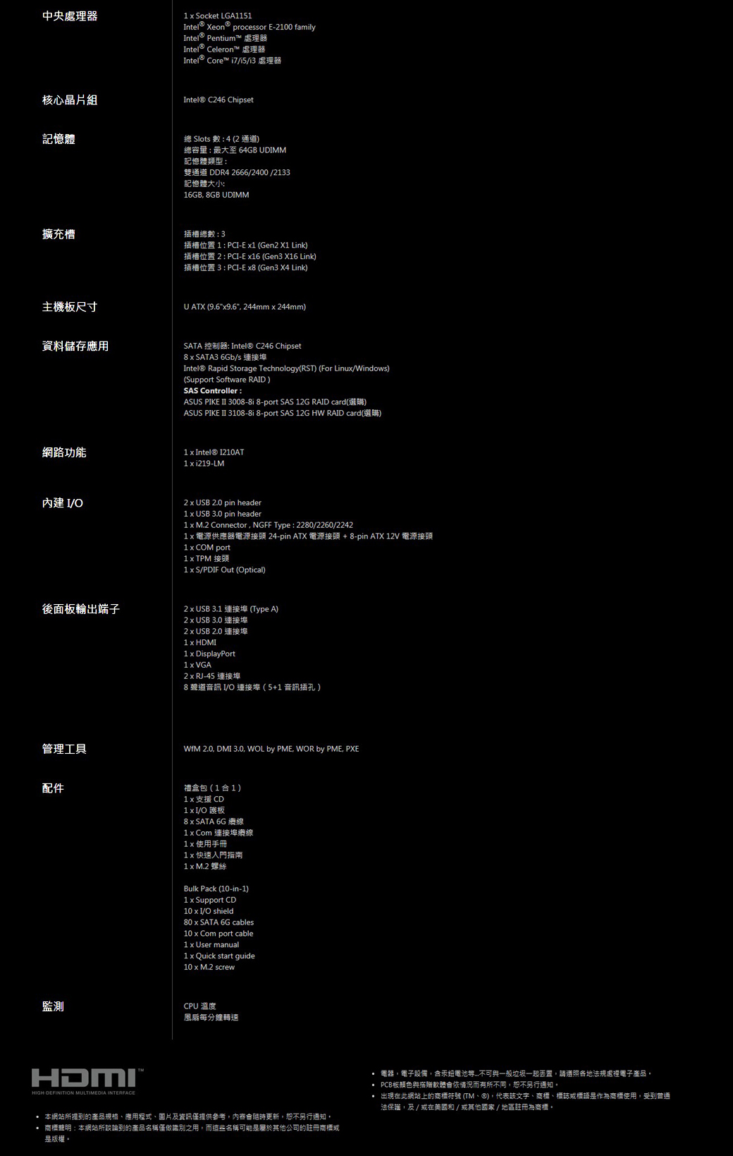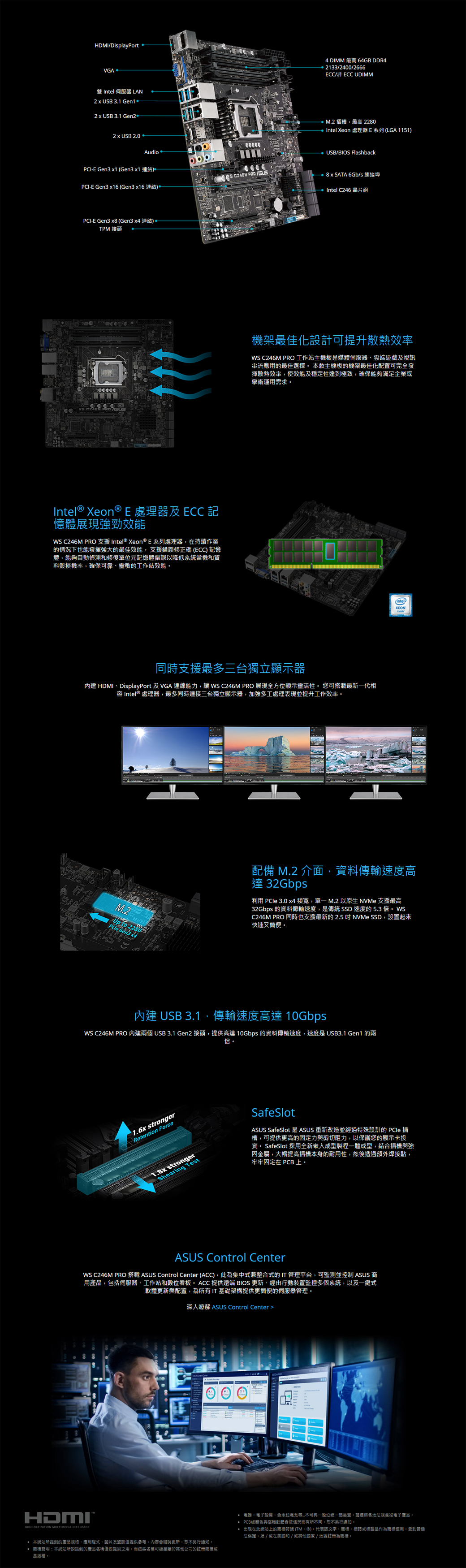 華碩 WS C246M PRO(M-ATX/C246/1A1H1P/雙I網/1*M.2三年)