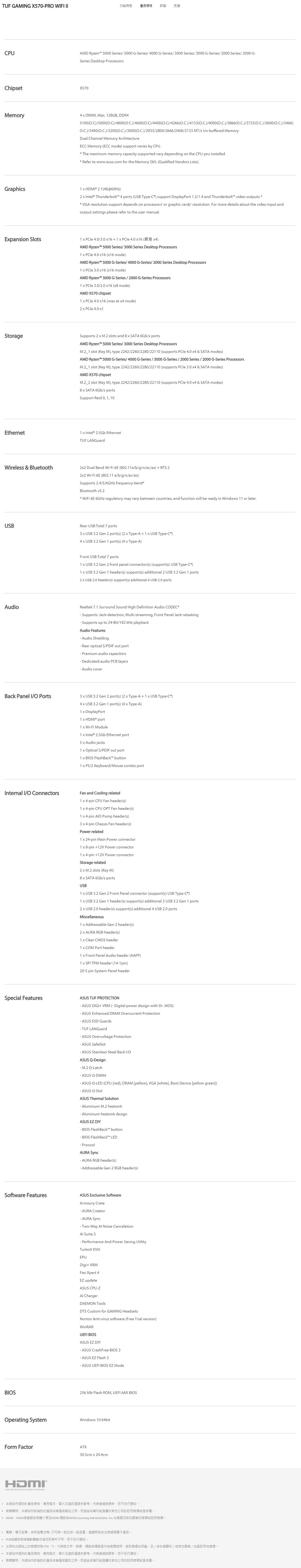 • 【任搭CPU優惠價】華碩 TUF GAMING X570-PRO WIFI II