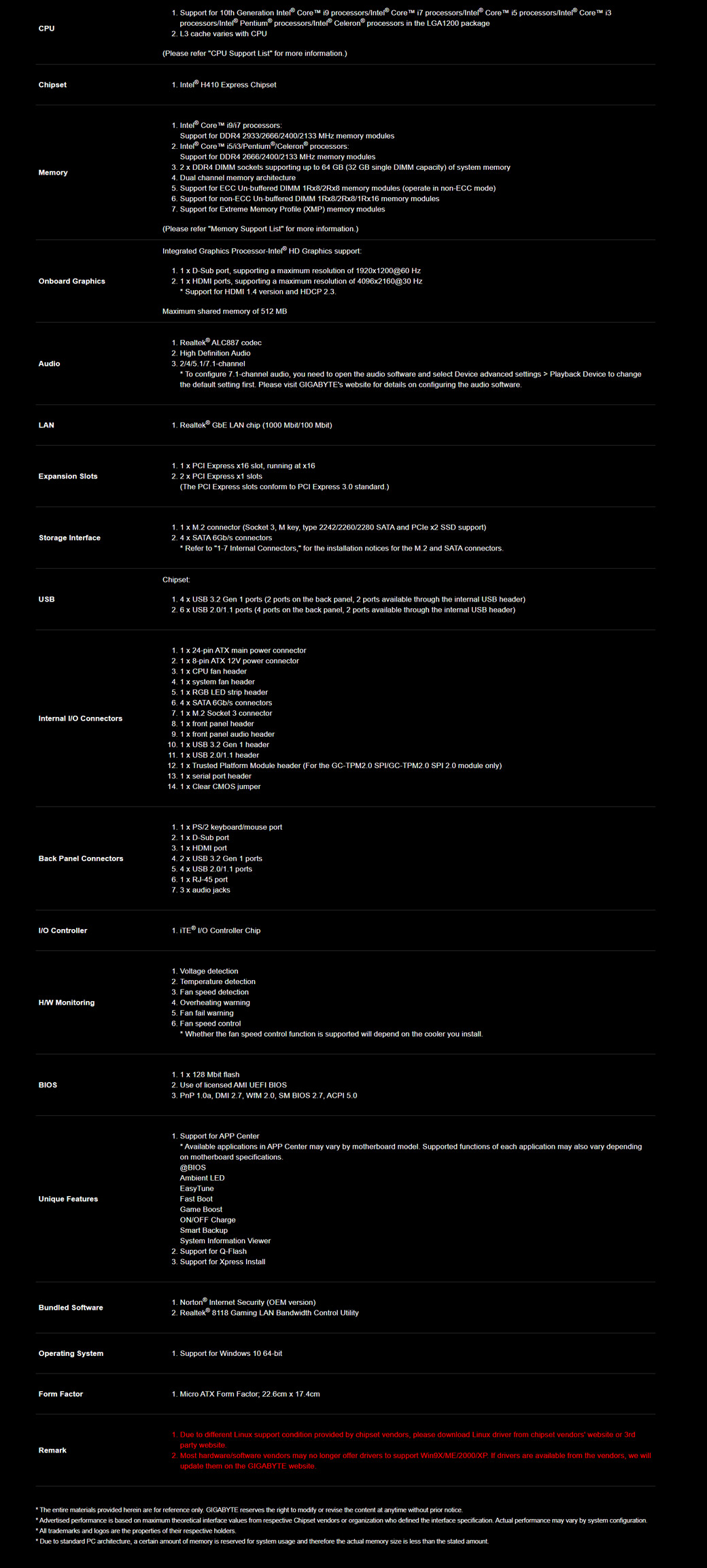 技嘉 H410M H