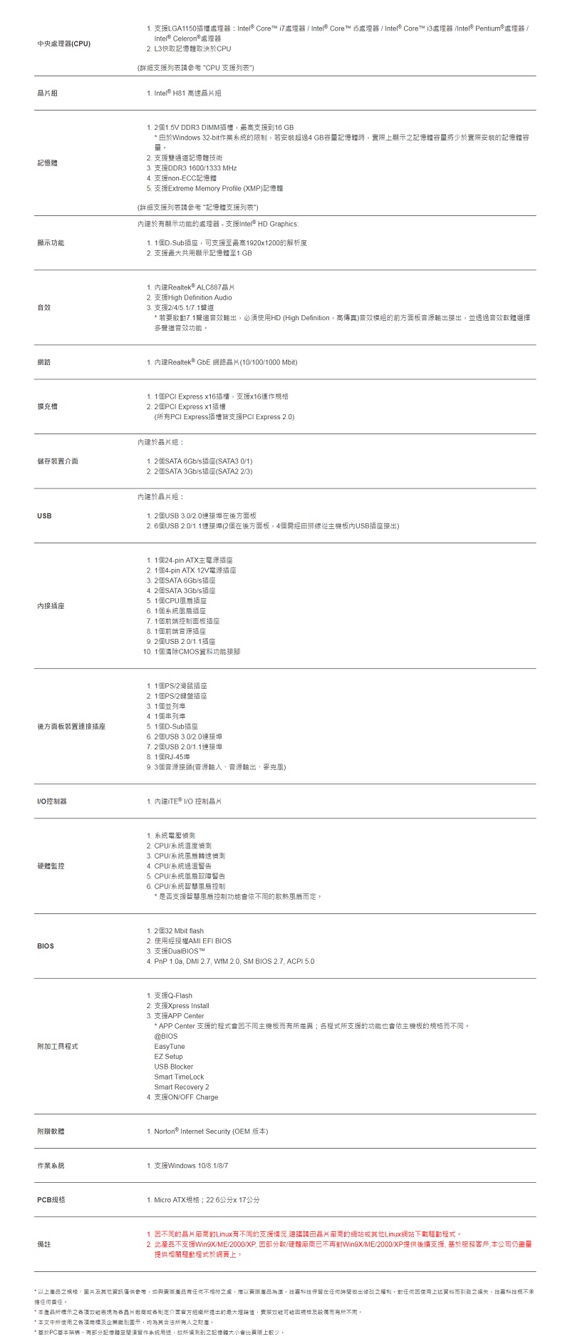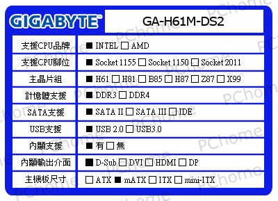 技嘉 H61M-DS2 R2(M-ATX/1A/LPTCOM1/全固態/註四年)