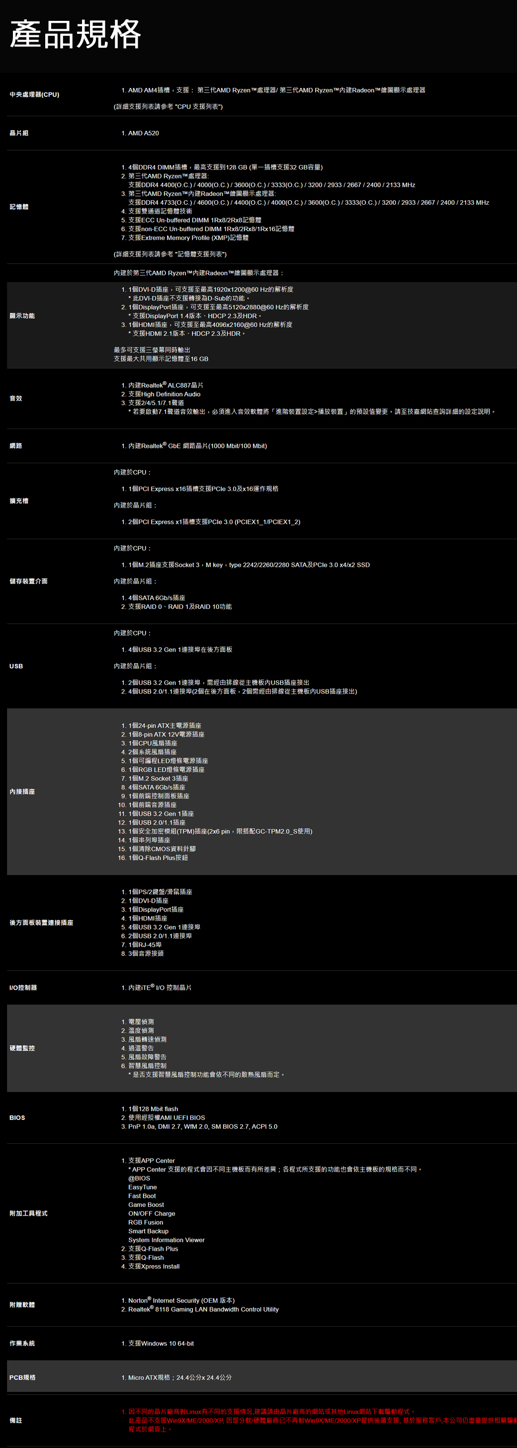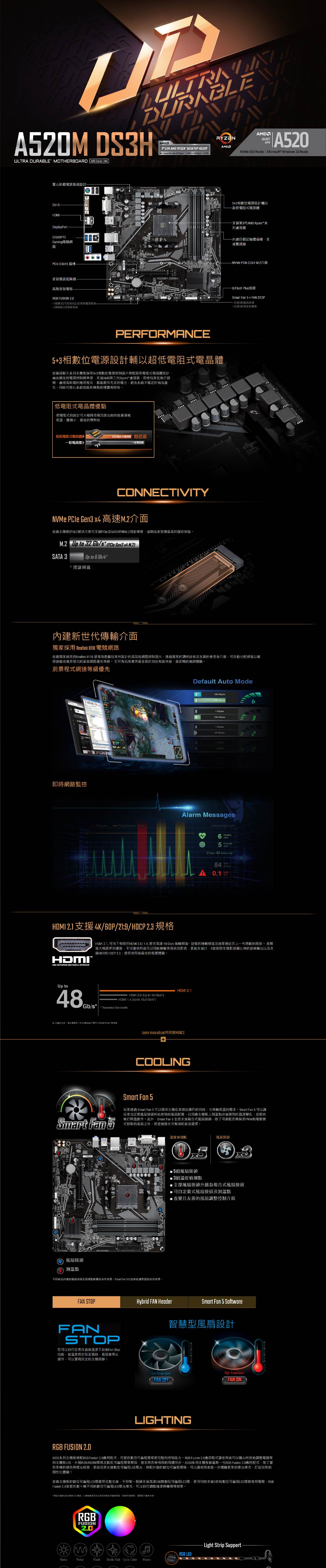 技嘉 A520M DS3H(M-ATX/1D1H/Realtek LAN/註四年) 5+3數位電源