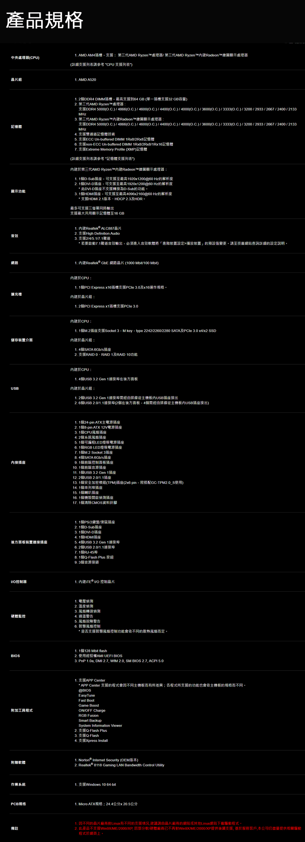 技嘉 A520M S2H (M-ATX/1A1D1H/Realtek LAN/註四年)