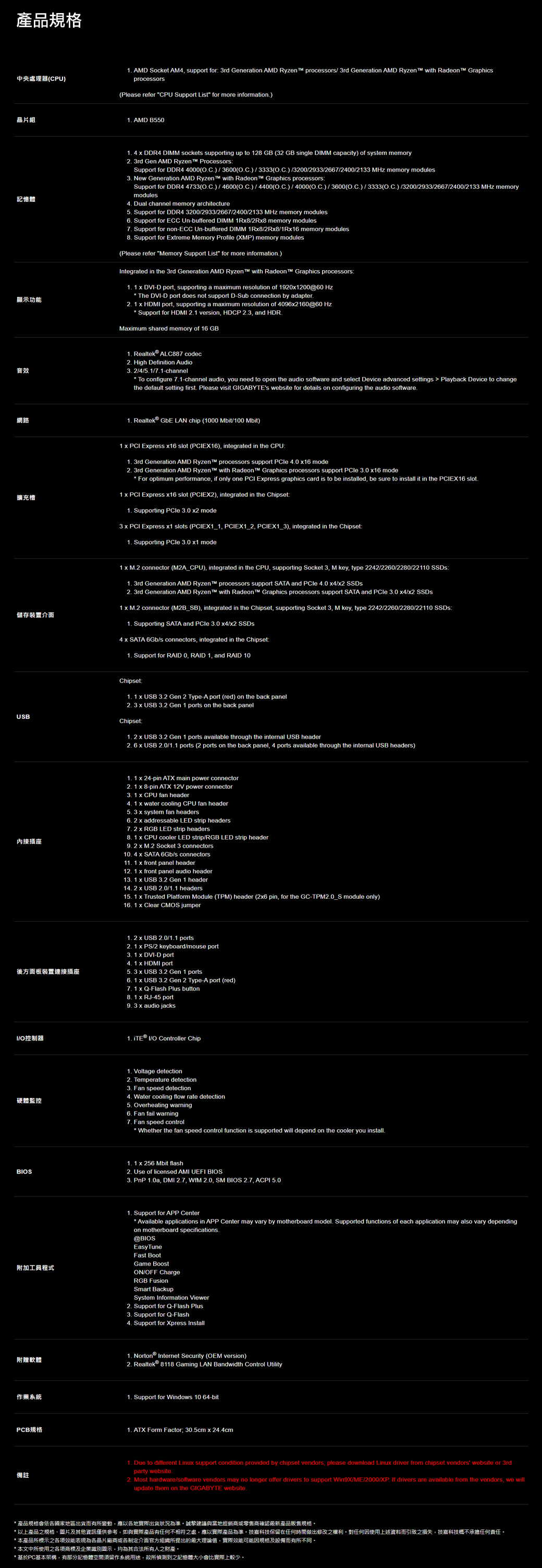 技嘉 B550 GAMING X(ATX/1D1H/Realtek LAN/註五年) 103相供電