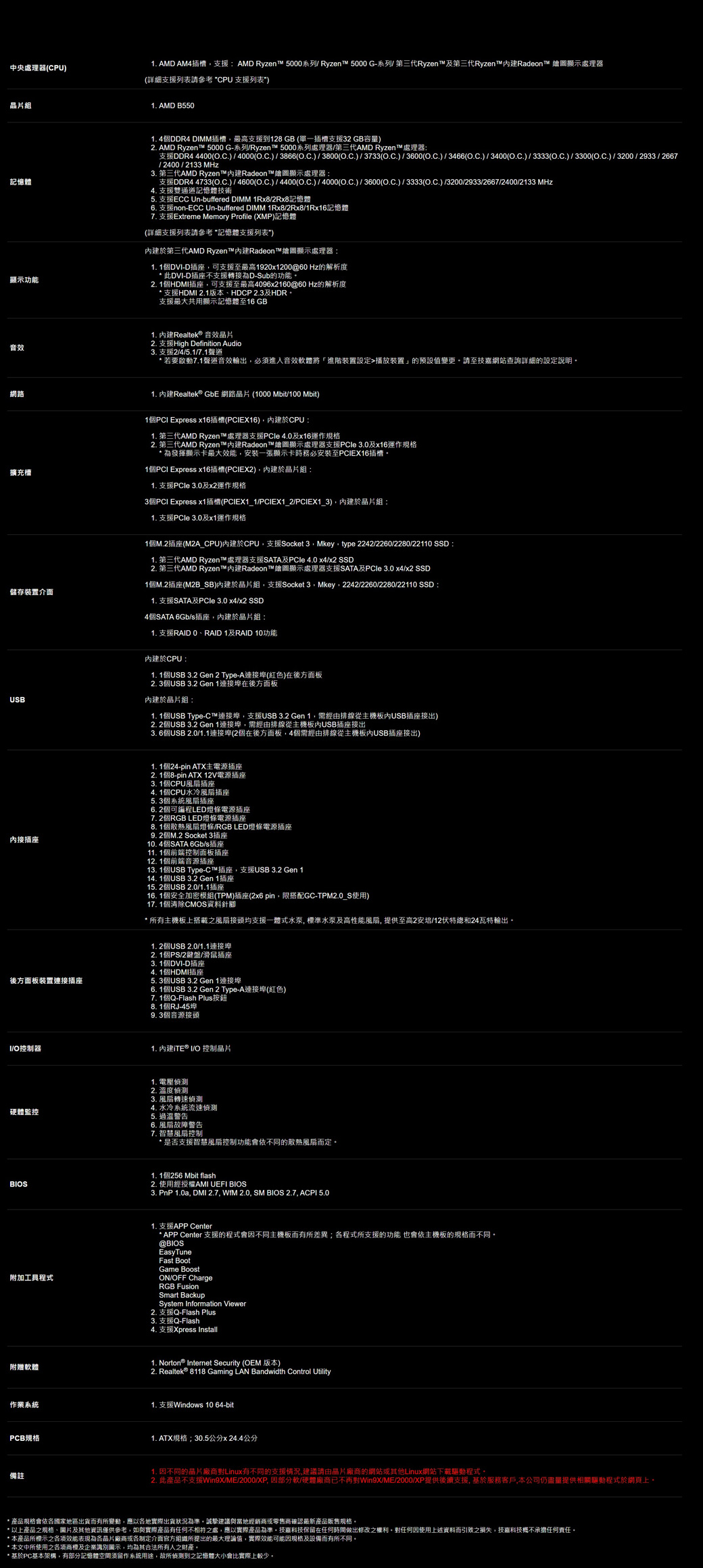 • 技嘉 B550 GAMING X V2