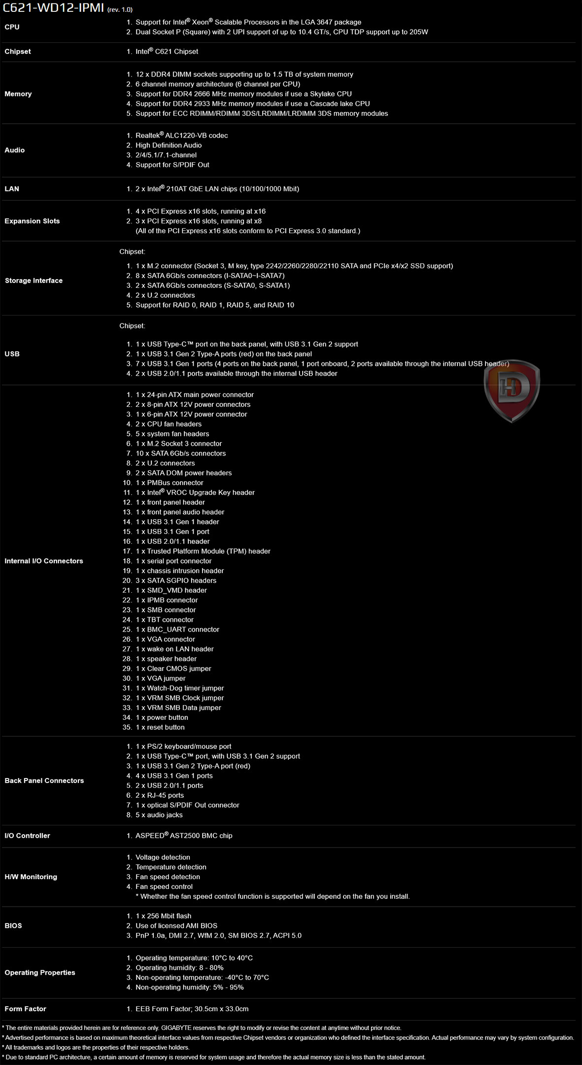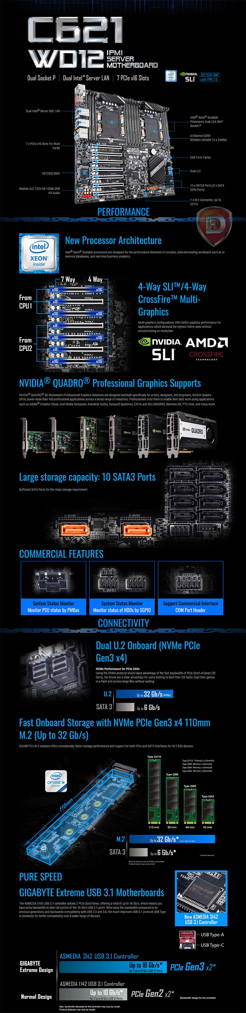 • 技嘉 C621-WD12-IPMI(EEB/雙3647/12*DDR4/1*M.2/2*U.2/雙I網)