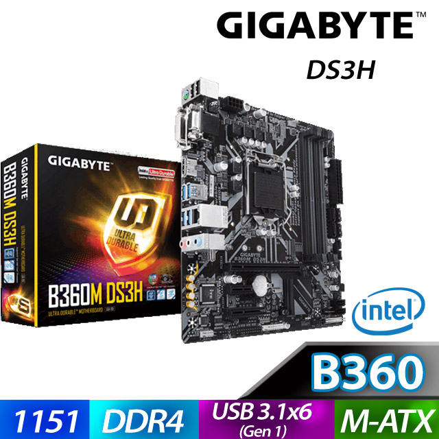 技嘉 B360M DS3H(M-ATX/1AD1H/M.2/註四年)