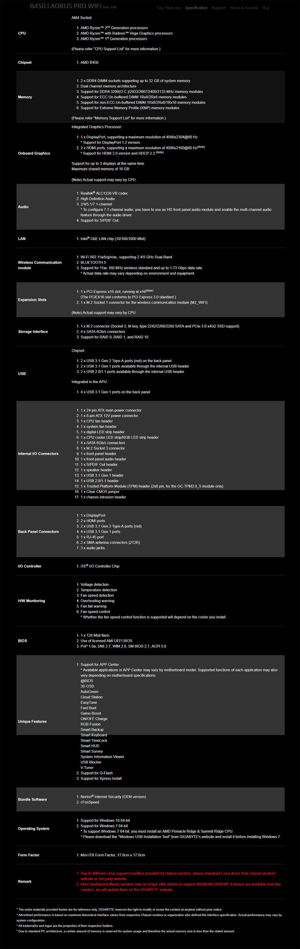 技嘉 B450 I AORUS PRO WIFI(mini-ITX/1H1P/I網/acBT4/註五年)
