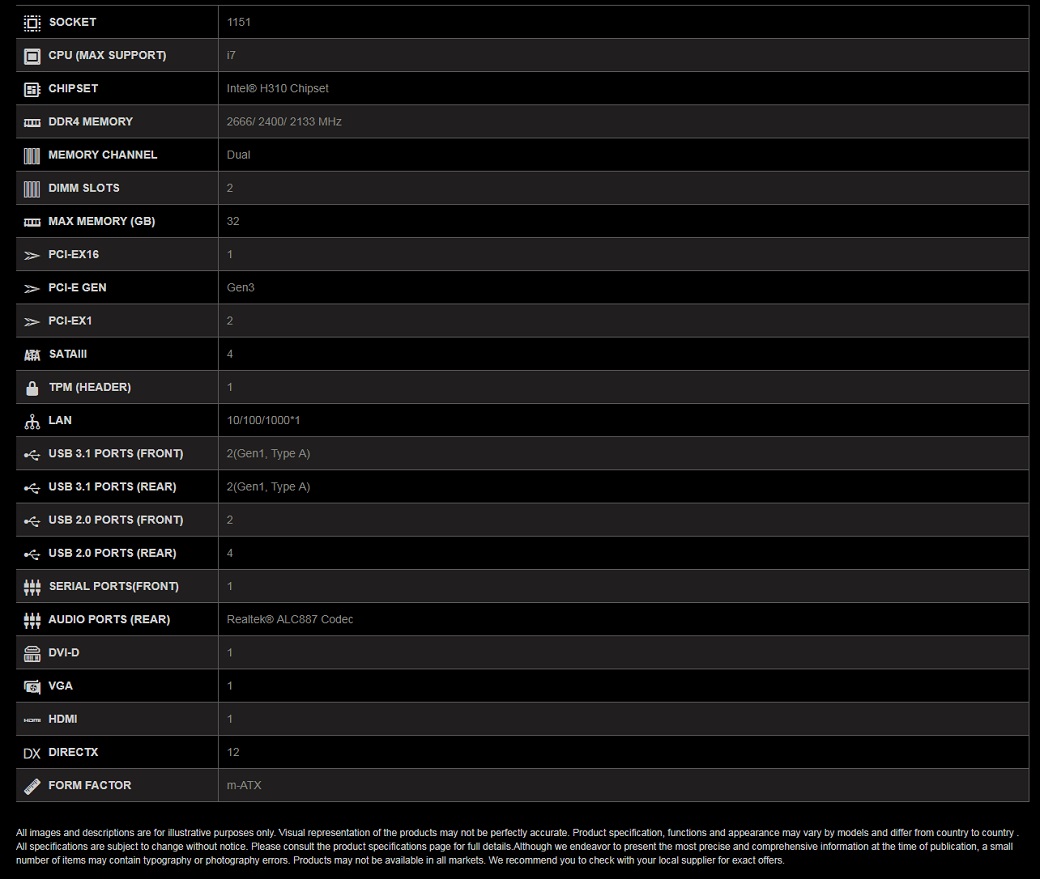 微星 H310M PRO-VDH(M-ATX/1A1D1H/註四年)