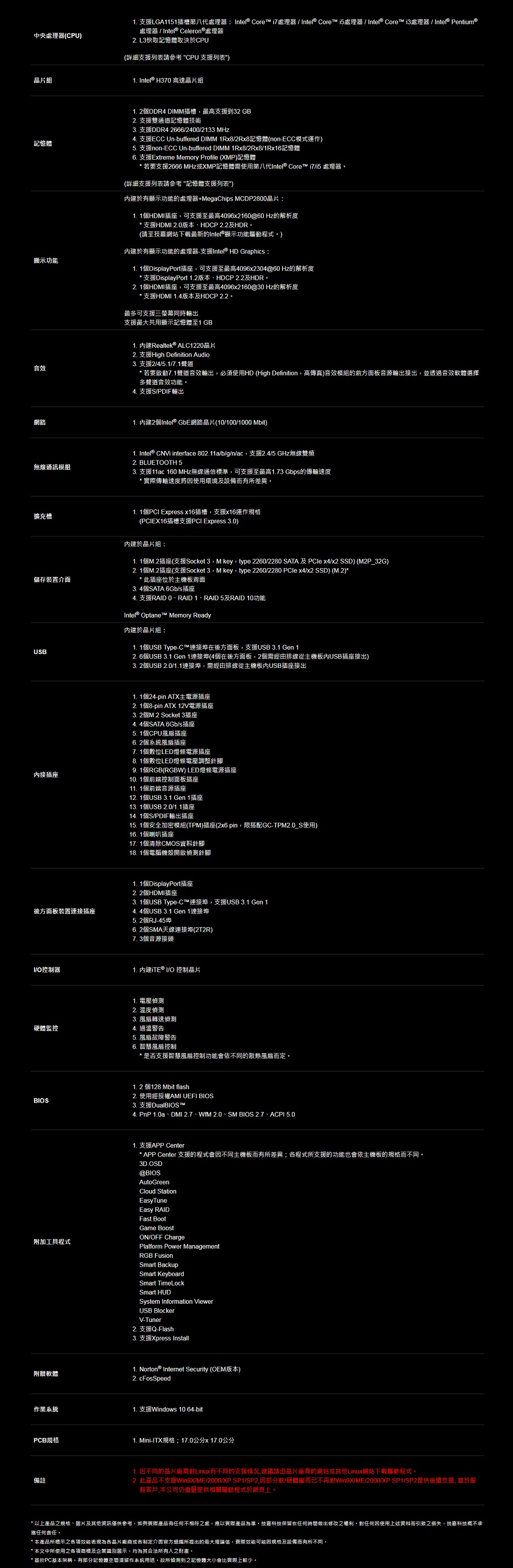 技嘉 H370N WIFI(mini-ITX/2H1P/2*M.2/2*I網/acBT4/註四年)