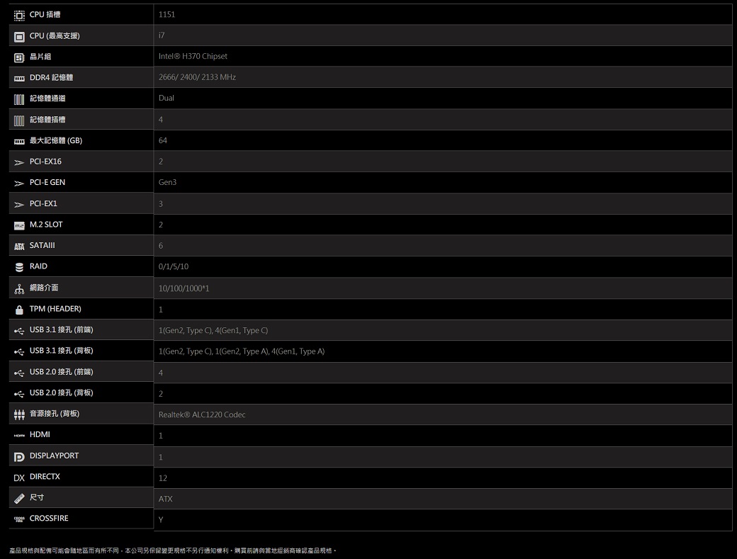 微星 H370 GAMING PRO CARBON(ATX/1H1P/2*M.2/註四年)