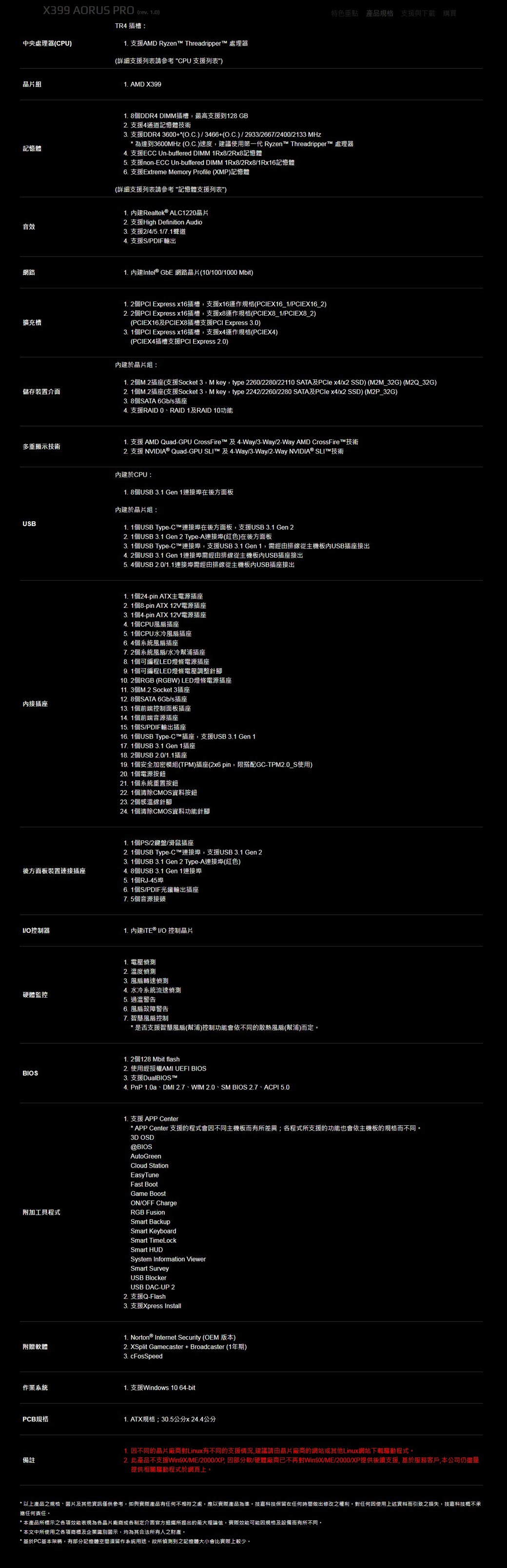 技嘉 X399 AORUS PRO(ATX/I網/4-Way SLI/註五年)