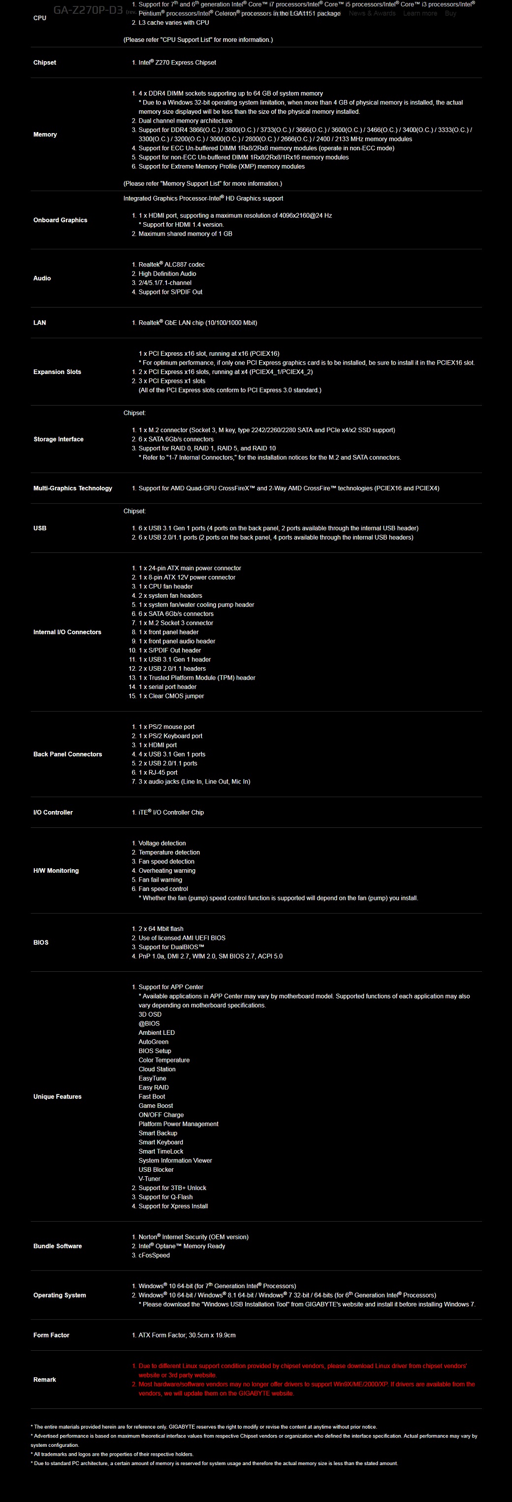 • 技嘉 Z270P-D3(ATX/1H/M.2/三年保)